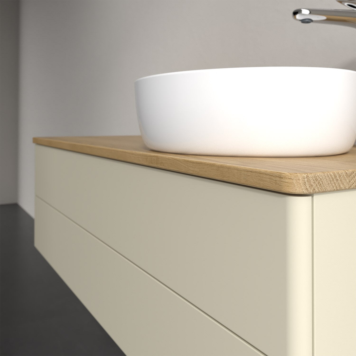 Für diesen Waschbeckenunterschrank stehen Ihnen Aufsatzwaschtische aus verschiedenen Serien zur Verfügung (siehe "Passliste" unter Downloads). Ein ausgewähltes Beispiel finden Sie im Zubehör. Den Waschtisch bitte separat mitbestellen.
