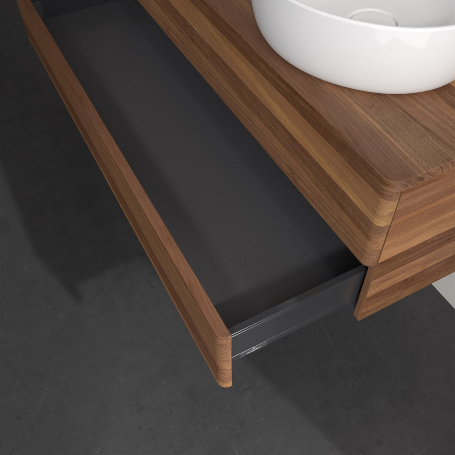 Für diesen Waschbeckenunterschrank stehen Ihnen Aufsatzwaschtische aus verschiedenen Serien zur Verfügung (siehe "Passliste" unter Downloads). Ein ausgewähltes Beispiel finden Sie im Zubehör. Den Waschtisch bitte separat mitbestellen.