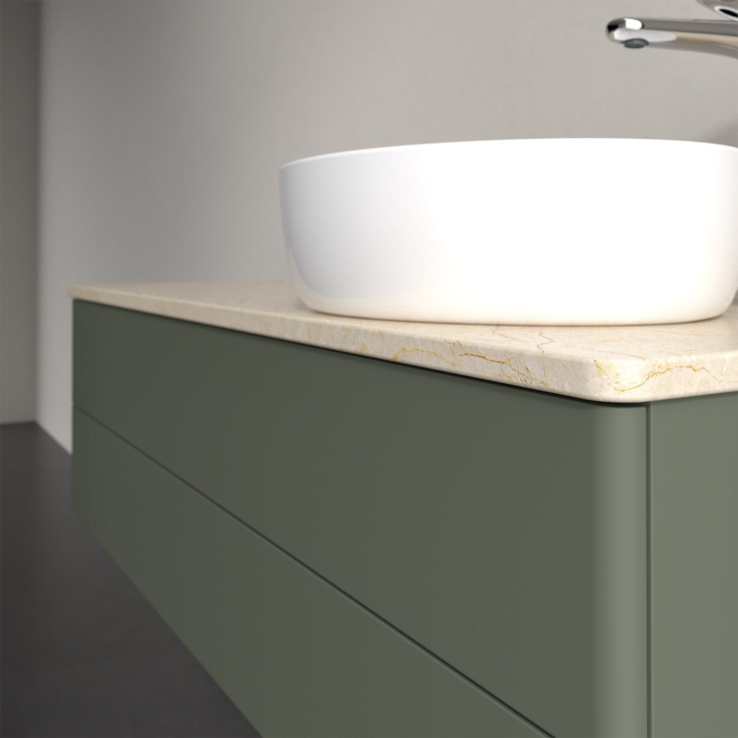 Für diesen Waschbeckenunterschrank stehen Ihnen Aufsatzwaschtische aus verschiedenen Serien zur Verfügung (siehe "Passliste" unter Downloads). Ein ausgewähltes Beispiel finden Sie im Zubehör. Den Waschtisch bitte separat mitbestellen.