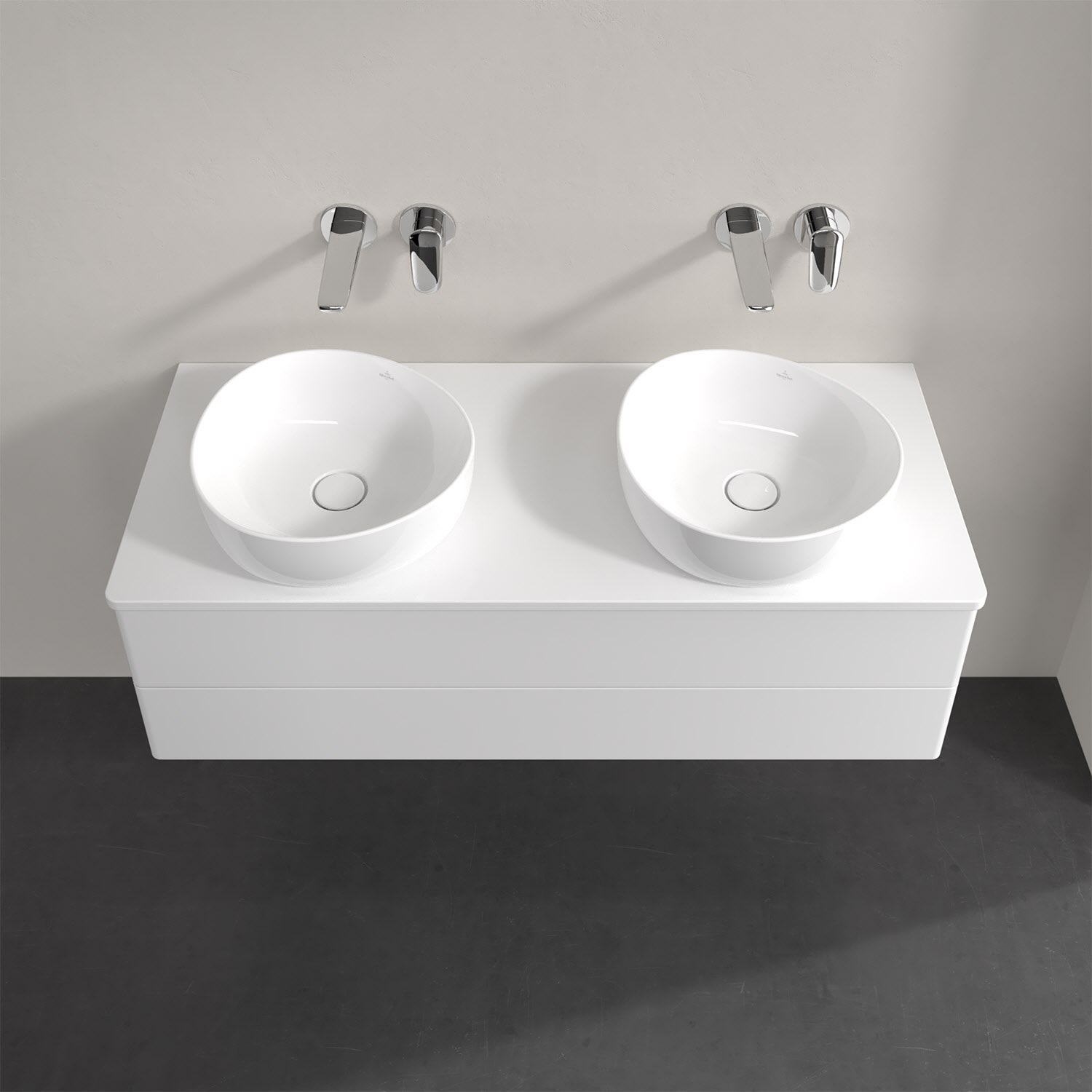 Villeroy & Boch Antao Waschbeckenunterschrank, 120 x 19 cm, 2 Auszüge, Fronten ohne Struktur, mit Hahnloch, für Waschtisch links und rechts