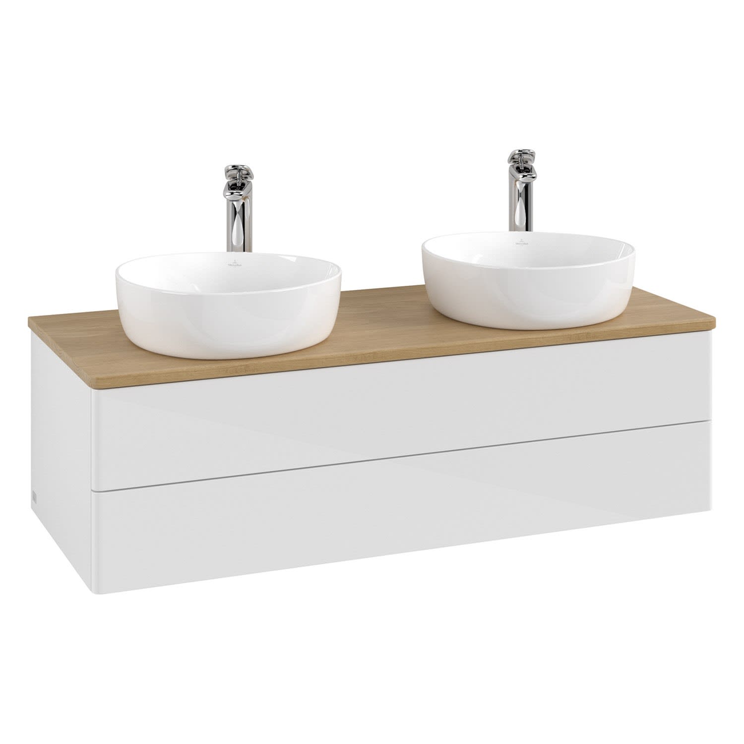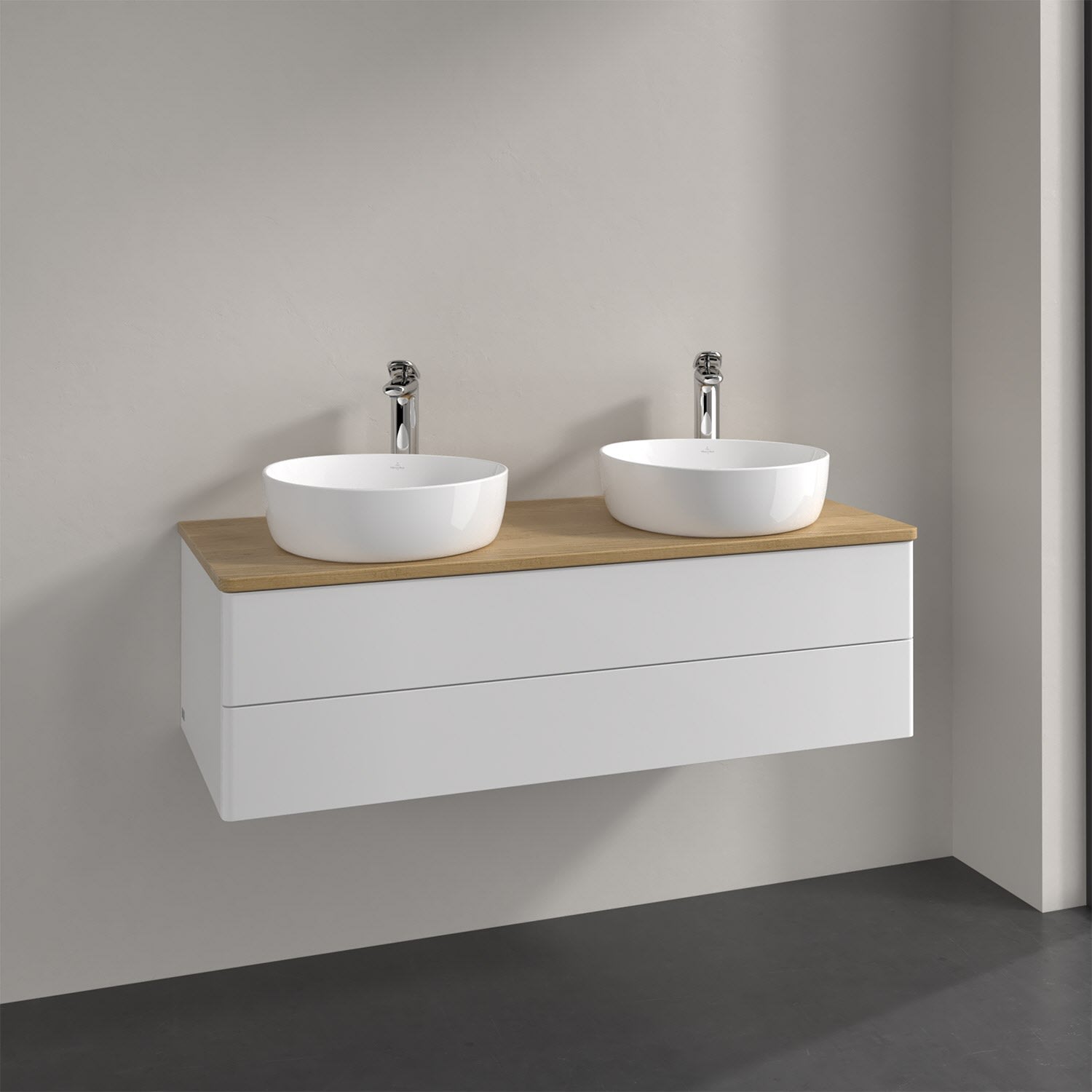 Villeroy & Boch Antao Waschbeckenunterschrank, 120 x 19 cm, 2 Auszüge, Fronten ohne Struktur, mit Hahnloch, für Waschtisch links und rechts