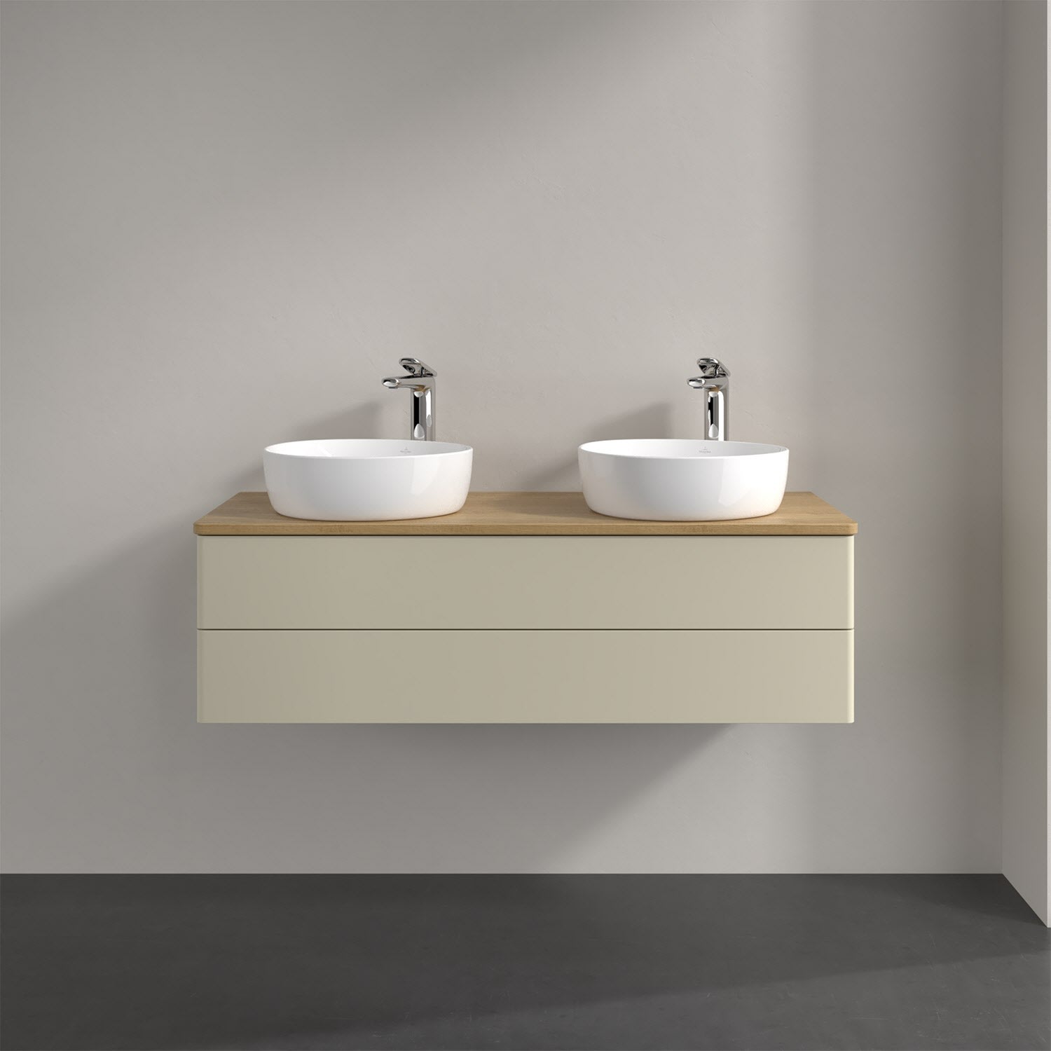Der wandhängende Antao Waschtischunterschrank von Villeroy & Boch bietet nicht nur jede Menge Stauraum – er ist dank seines naturinspirierten Designs mit seinen abgerundeten Kanten auch noch besonders stilvoll und schafft eine gemütliche Atmosphäre im Badezimmer. Kombiniert mit zwei passenden Aufsatzwaschtischen also die ideale Wahl. Zwei geräumige Auszüge bieten viel Platz, um alles Notwendige zu verstauen und Ordnung zu halten. Öffnen lassen sie sich durch leichten Druck auf die grifflose Front. Dank Vollauszug hat man immer alles im Blick und der Antirutschboden verhindert ein Umfallen oder Verrutschen der Gegenstände. Einfach clever! Für eine besonders leichte Pflege sorgt die mehrschichtig deckend lackierte Oberfläche. Bei der Ausführung in Massivholz wird dank des verarbeiteten Massivholzes jedes Möbel zu einem Unikat, das sich durch das lebendige Naturmaterial durch seine einzigartige Struktur und Maserung auszeichnet.