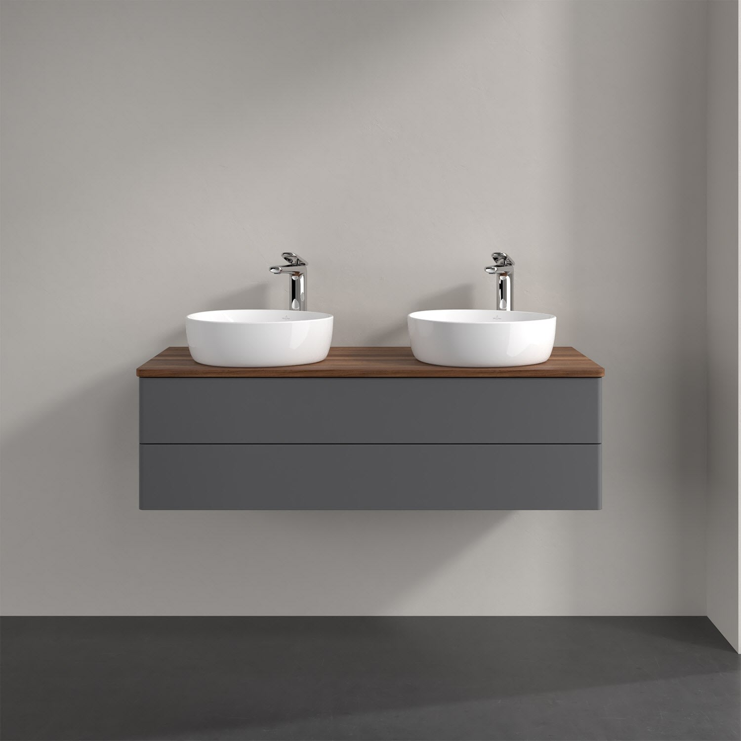 Villeroy & Boch Antao Waschbeckenunterschrank, 120 x 19 cm, 2 Auszüge, Fronten ohne Struktur, mit Hahnloch, für Waschtisch links und rechts