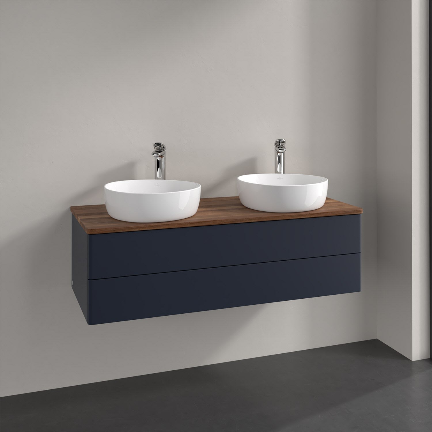 Villeroy & Boch Antao Waschbeckenunterschrank, 120 x 19 cm, 2 Auszüge, Fronten ohne Struktur, mit Hahnloch, für Waschtisch links und rechts