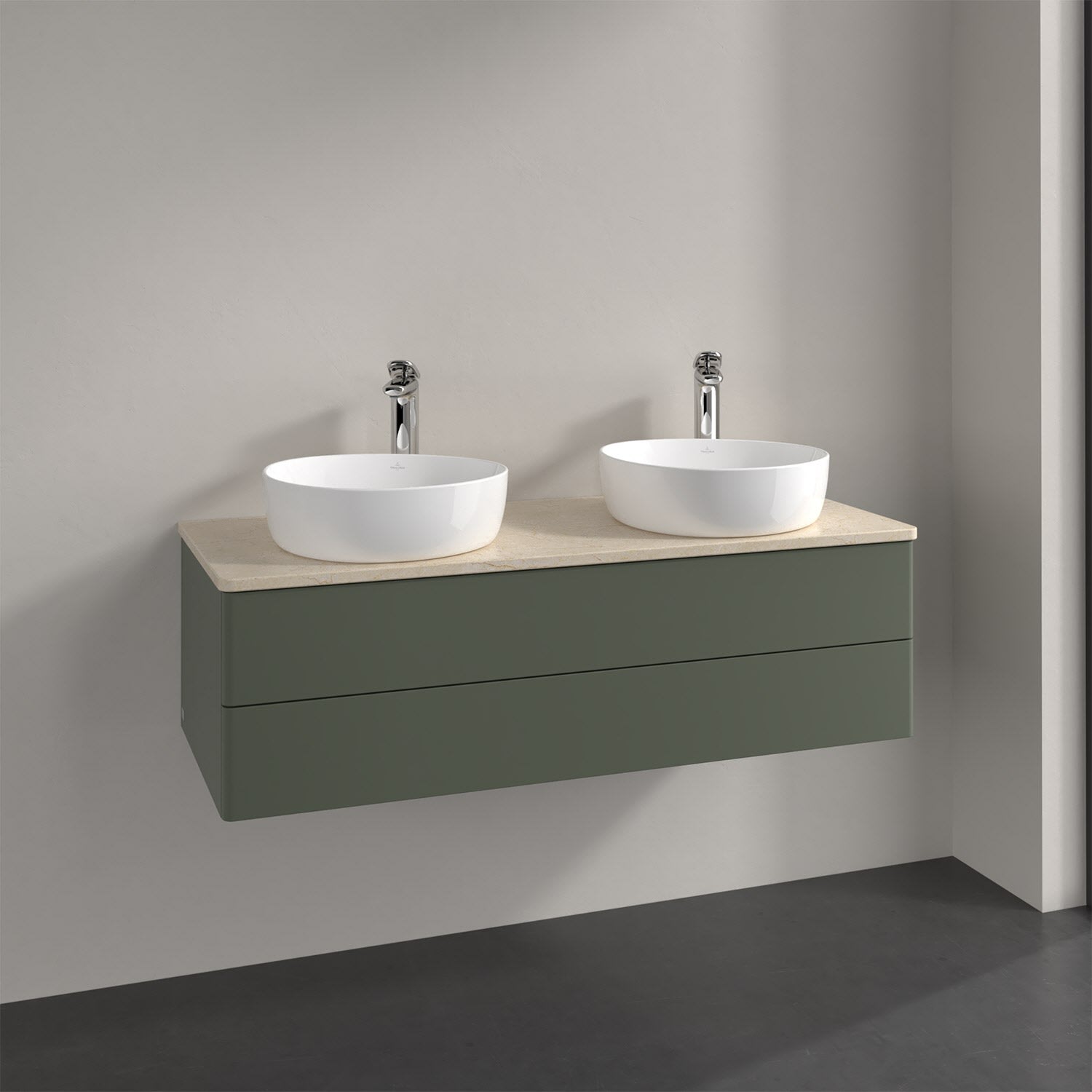 Villeroy & Boch Antao Waschbeckenunterschrank, 120 x 19 cm, 2 Auszüge, Fronten ohne Struktur, mit Hahnloch, für Waschtisch links und rechts