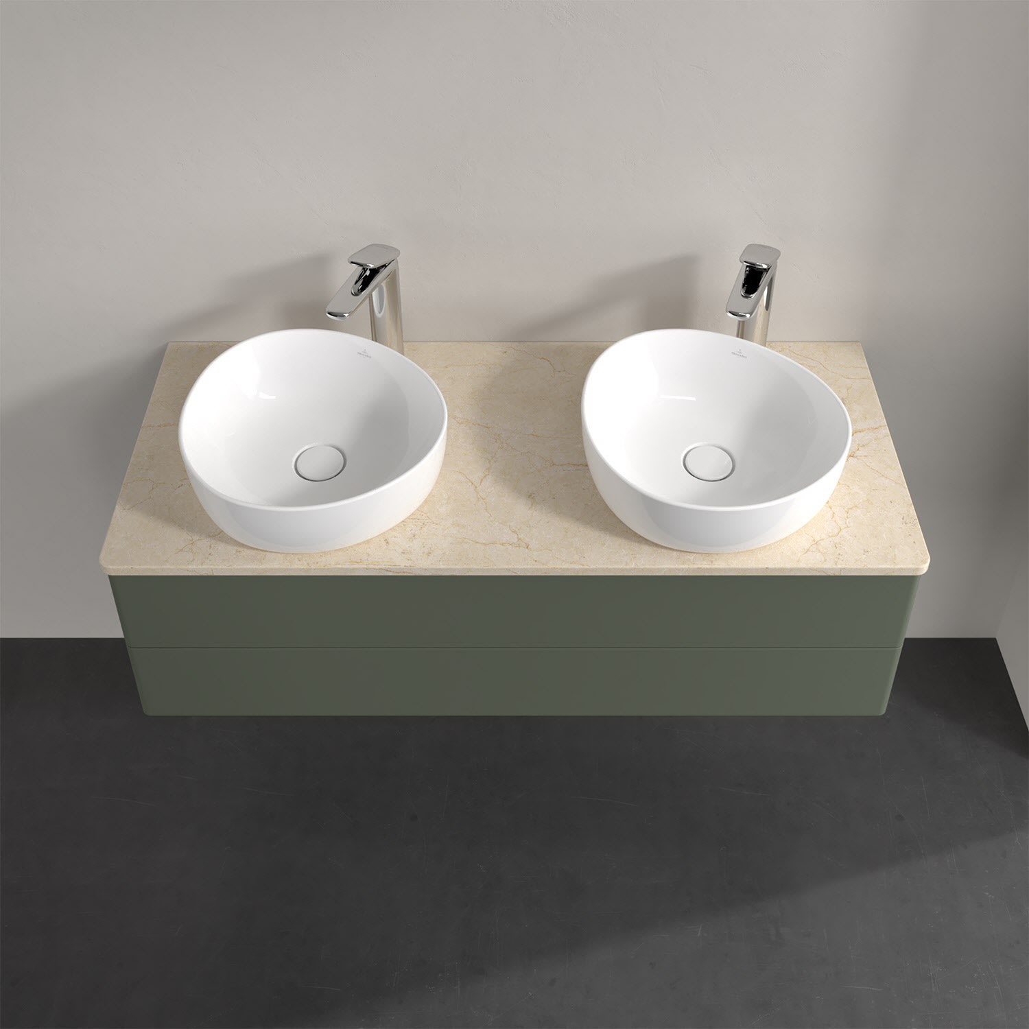 Für diesen Waschbeckenunterschrank stehen Ihnen Aufsatzwaschtische aus verschiedenen Serien zur Verfügung (siehe "Passliste" unter Downloads). Ein ausgewähltes Beispiel finden Sie im Zubehör. Den Waschtisch bitte separat mitbestellen.