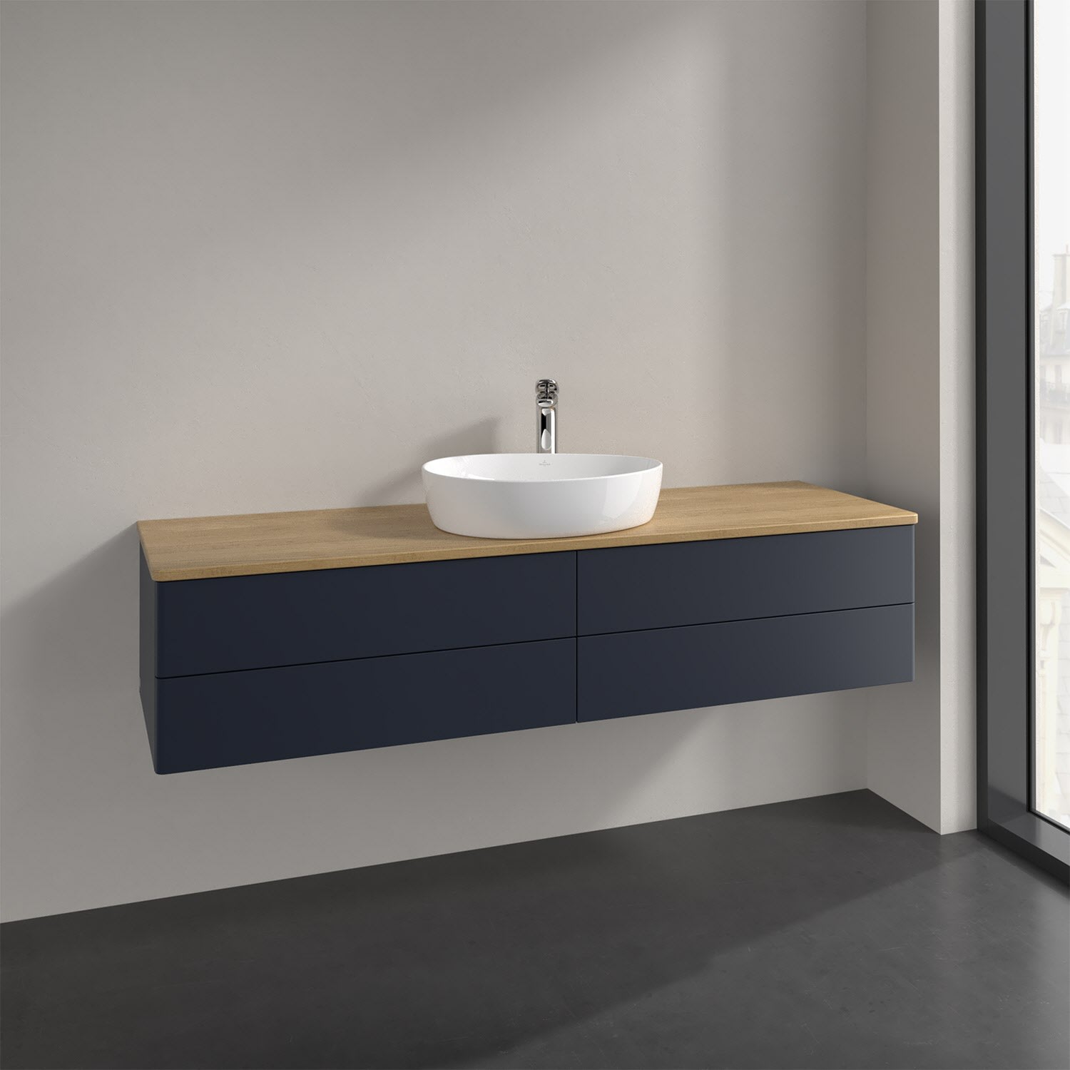 Villeroy & Boch Antao Waschbeckenunterschrank, 160 x 19 cm, 4 Auszüge, Fronten ohne Struktur, mit Hahnloch, für Waschtisch mittig
