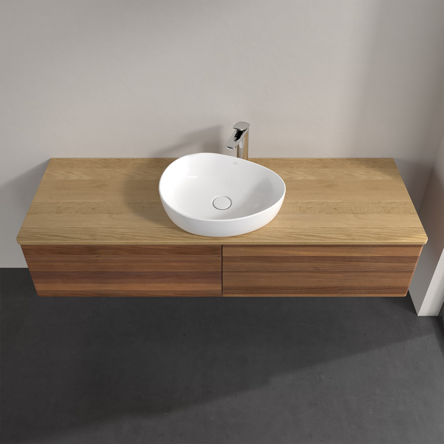 Villeroy & Boch Antao Waschbeckenunterschrank, 160 x 19 cm, 4 Auszüge, Fronten ohne Struktur, mit Hahnloch, für Waschtisch mittig