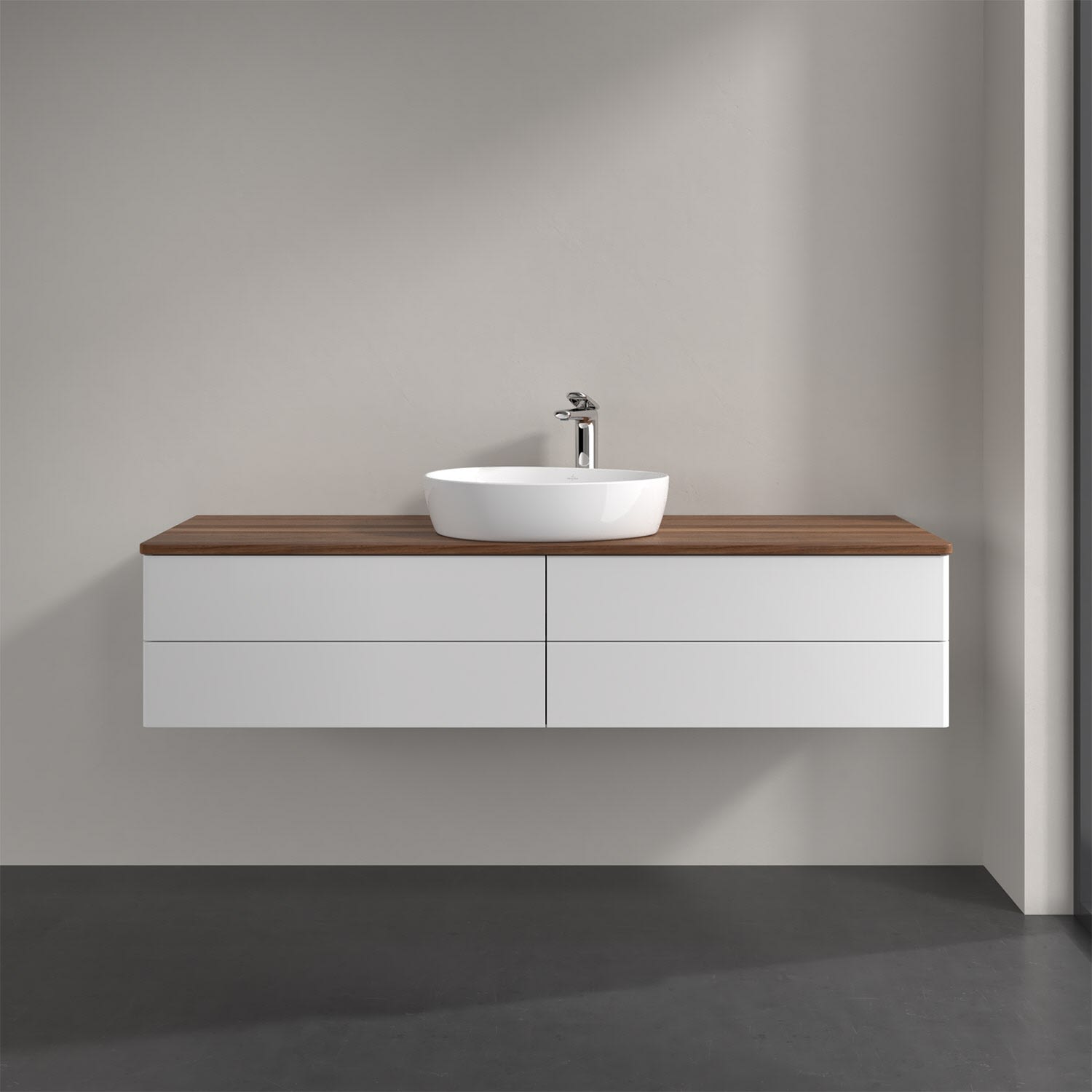 Villeroy & Boch Antao Waschbeckenunterschrank, 160 x 19 cm, 4 Auszüge, Fronten ohne Struktur, mit Hahnloch, für Waschtisch mittig