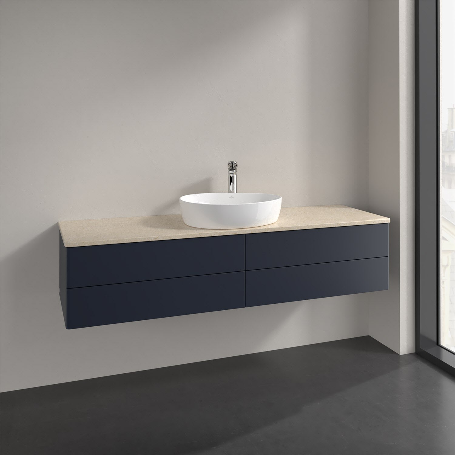Villeroy & Boch Antao Waschbeckenunterschrank, 160 x 19 cm, 4 Auszüge, Fronten ohne Struktur, mit Hahnloch, für Waschtisch mittig