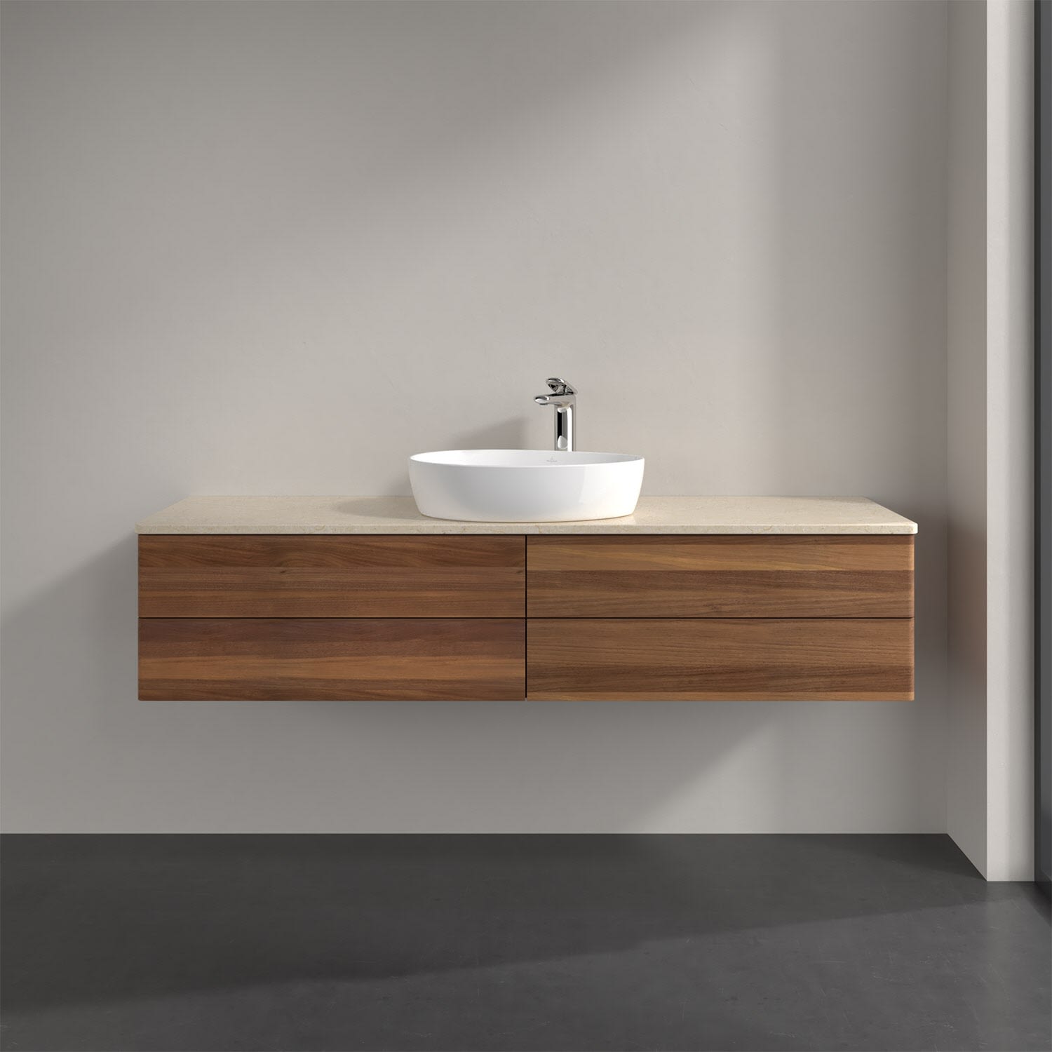 Villeroy & Boch Antao Waschbeckenunterschrank, 160 x 19 cm, 4 Auszüge, Fronten ohne Struktur, mit Hahnloch, für Waschtisch mittig