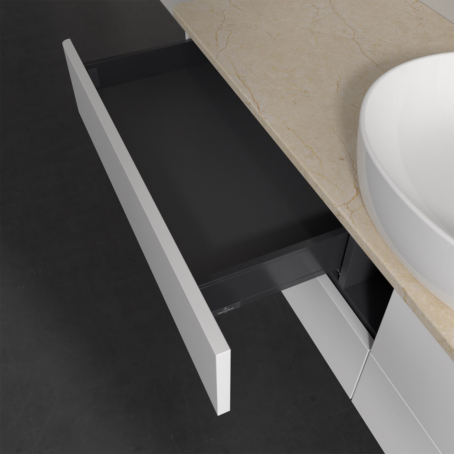 Villeroy & Boch Antao Waschbeckenunterschrank, 160 x 19 cm, 4 Auszüge, Fronten ohne Struktur, mit Hahnloch, für Waschtisch mittig