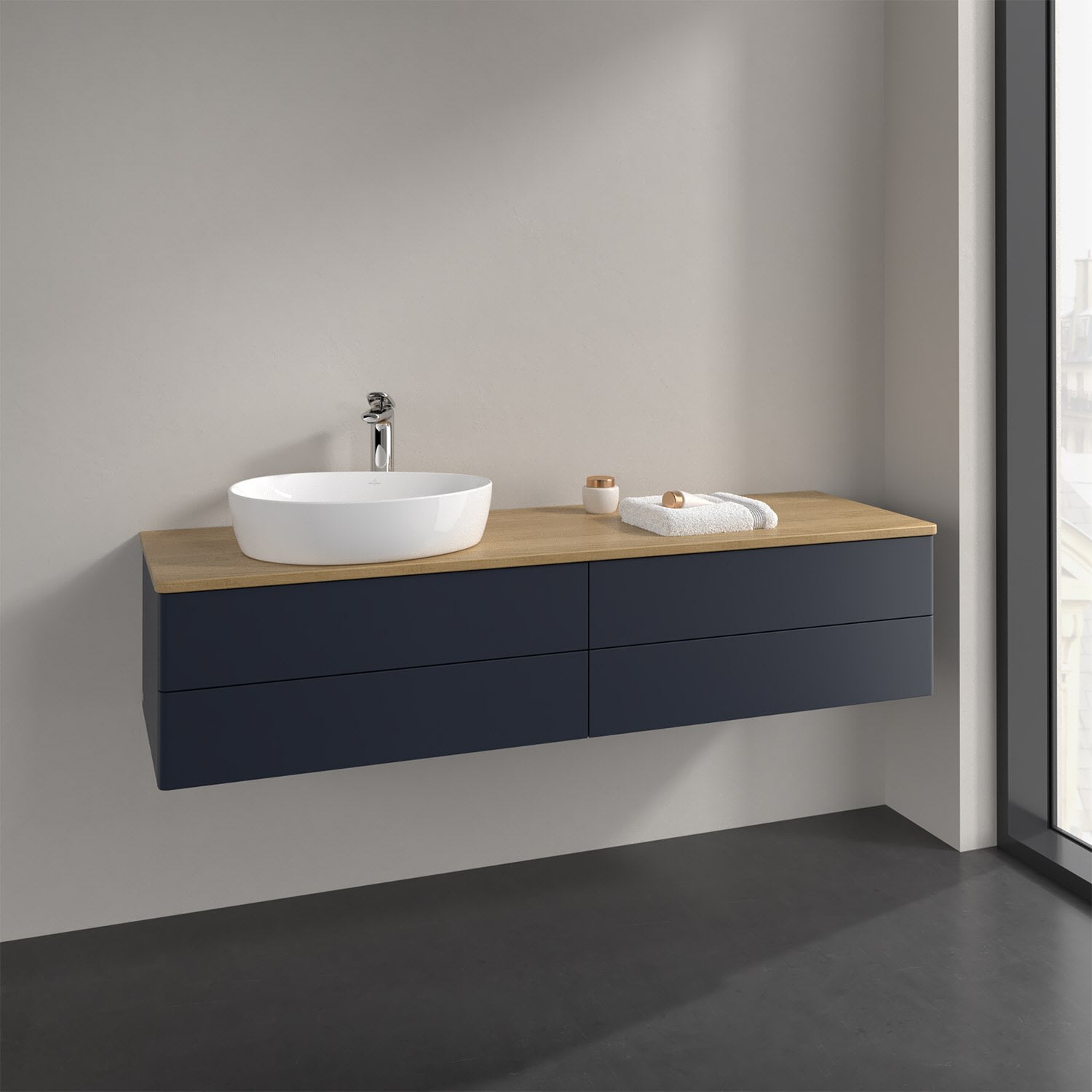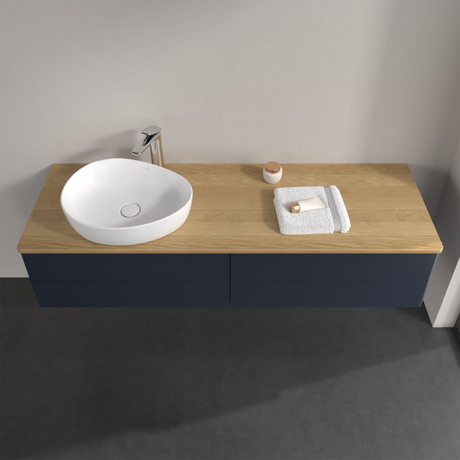 Villeroy & Boch Antao Waschbeckenunterschrank, 160 x 19 cm, 4 Auszüge, Fronten ohne Struktur, mit Hahnloch, für Waschtisch links
