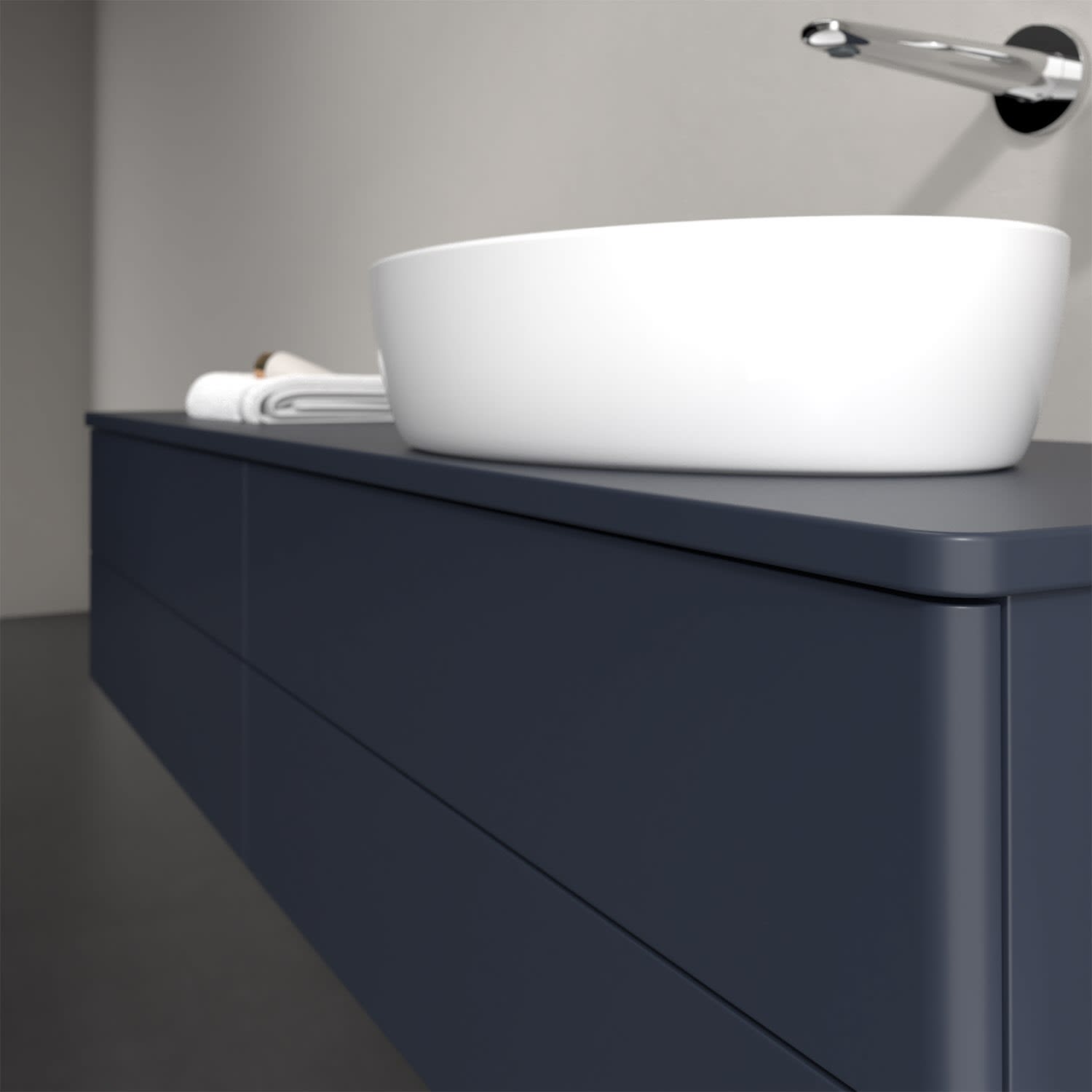 Für diesen Waschbeckenunterschrank stehen Ihnen Aufsatzwaschtische aus verschiedenen Serien zur Verfügung (siehe "Passliste" unter Downloads). Ein ausgewähltes Beispiel finden Sie im Zubehör. Den Waschtisch bitte separat mitbestellen.