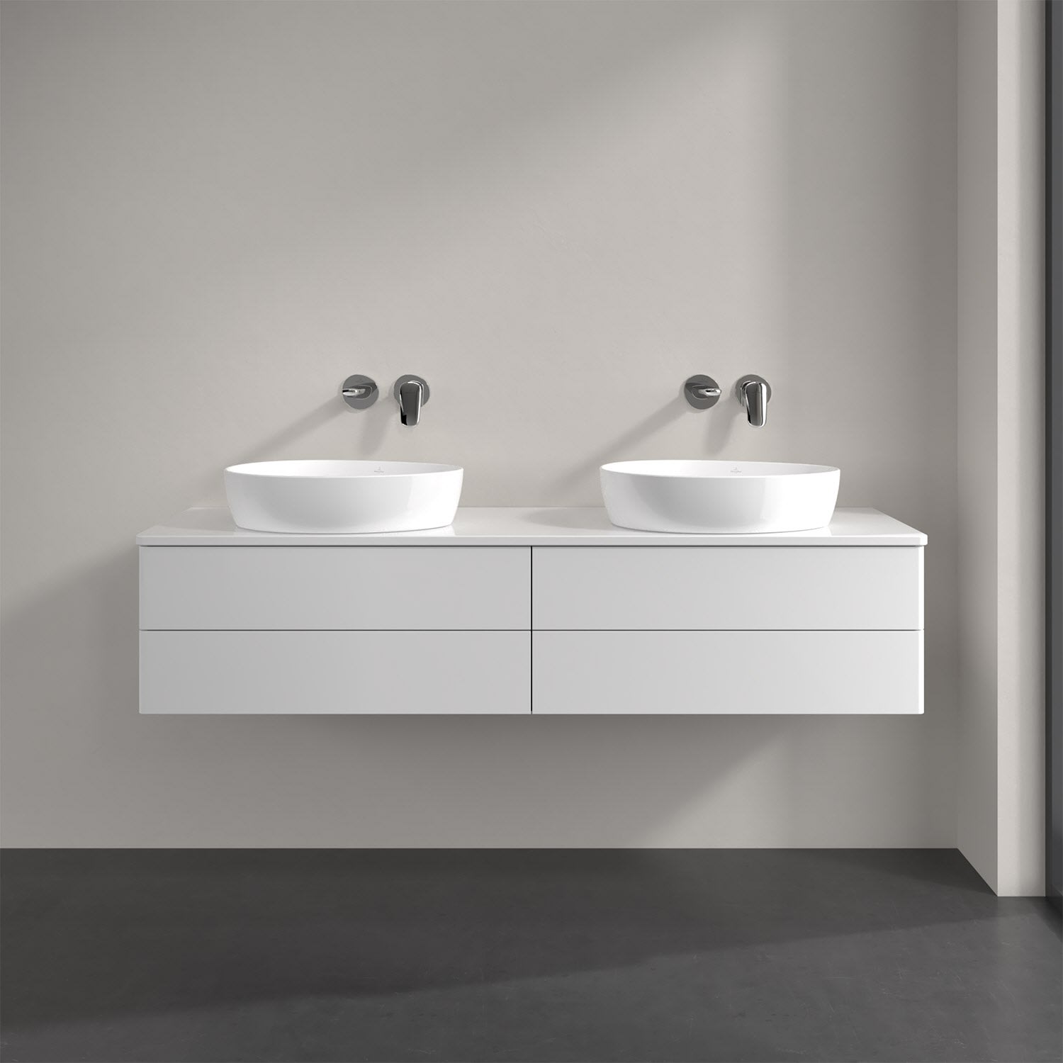 Villeroy & Boch Antao Waschbeckenunterschrank, 160 x 19 cm, 4 Auszüge, Fronten ohne Struktur, mit Hahnloch, für Waschtisch links und rechts