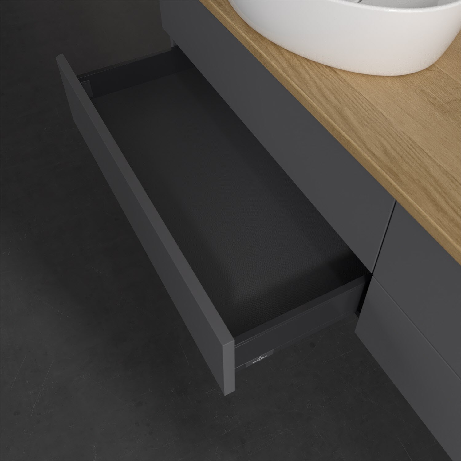 Villeroy & Boch Antao Waschbeckenunterschrank, 160 x 19 cm, 4 Auszüge, Fronten ohne Struktur, mit Hahnloch, für Waschtisch links und rechts