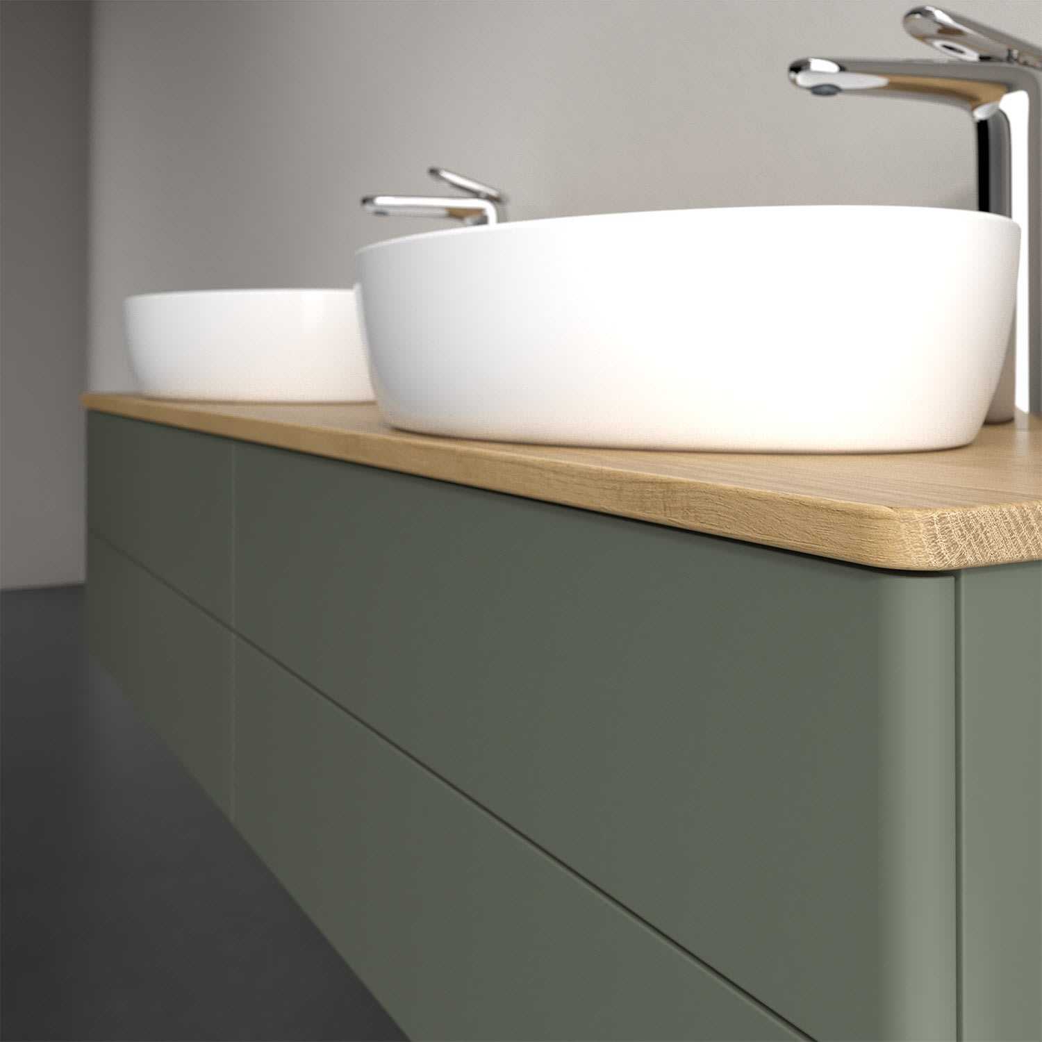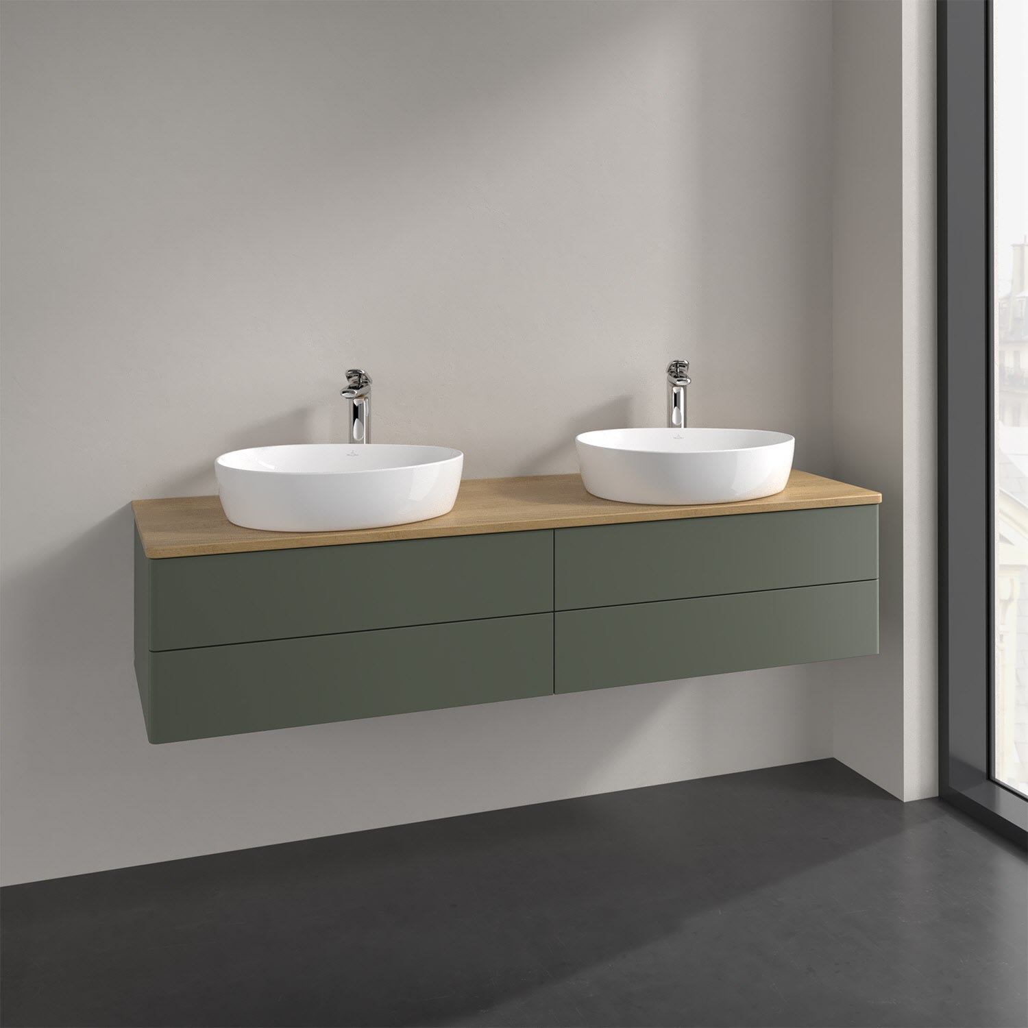 Der wandhängende Antao Waschtischunterschrank für zwei Aufsatzwaschtische bietet mit seinen vier Auszügen und seiner erstaunlichen Größe viel Platz zum Verstauen von Utensilien im Badezimmer. Inspiriert von der Natur überzeugt der Unterschrank auch optisch mit sanfter Formsprache und abgerundete Kanten. Die grifflosen Auszüge sind mit der Push-to-Open Funktion ausgestattet und verfügen über einen Antirutschboden, damit Utensilien sicher verstaut werden können. Mit seiner Vollauszug- und Selbsteinzug-Funktion ist der Schrank praktisch und leicht zu bedienen. Qualität von Villeroy & Boch! Für eine besonders leichte Pflege sorgt die mehrschichtig deckend lackierte Oberfläche. Bei der Ausführung in Massivholz wird dank des verarbeiteten Massivholzes jedes Möbel zu einem Unikat, das sich durch das lebendige Naturmaterial durch seine einzigartige Struktur und Maserung auszeichnet.