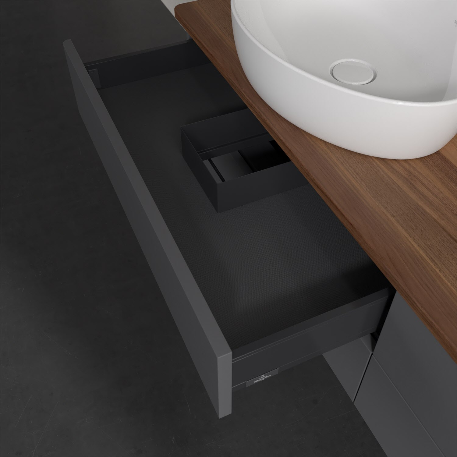 Villeroy & Boch Antao Waschbeckenunterschrank, 160 x 19 cm, 4 Auszüge, Fronten ohne Struktur, mit Hahnloch, für Waschtisch links und rechts