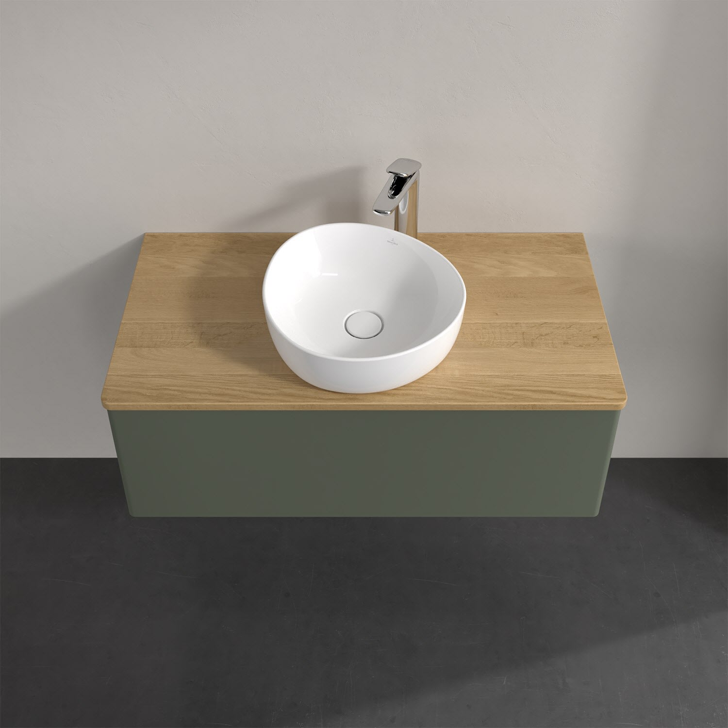 Für diesen Waschbeckenunterschrank stehen Ihnen Aufsatzwaschtische aus verschiedenen Serien zur Verfügung (siehe "Passliste" unter Downloads). Ein ausgewähltes Beispiel finden Sie im Zubehör. Den Waschtisch bitte separat mitbestellen.