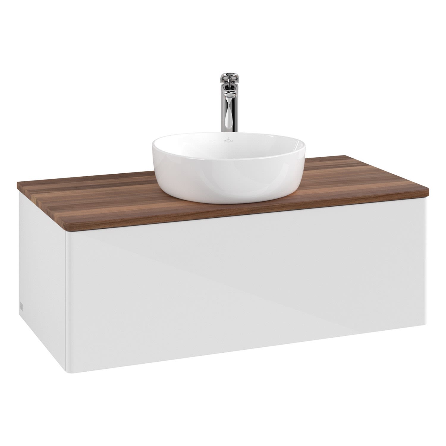 Villeroy & Boch Antao Waschbeckenunterschrank, 100 x 36 cm, 1 Auszug, Front ohne Struktur, mit Hahnloch