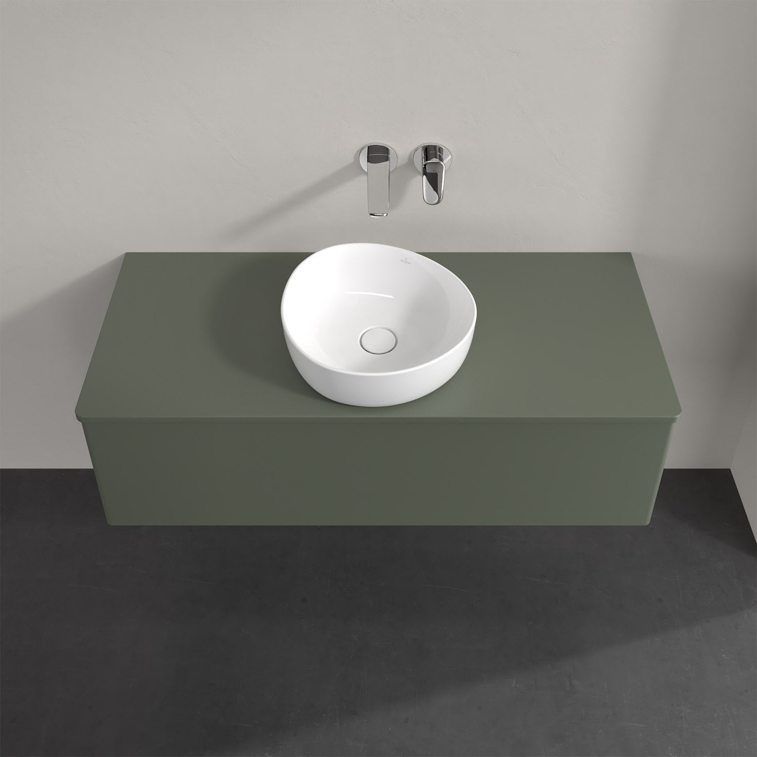 Für diesen Waschbeckenunterschrank stehen Ihnen Aufsatzwaschtische aus verschiedenen Serien zur Verfügung (siehe "Passliste" unter Downloads). Ein ausgewähltes Beispiel finden Sie im Zubehör. Den Waschtisch bitte separat mitbestellen.