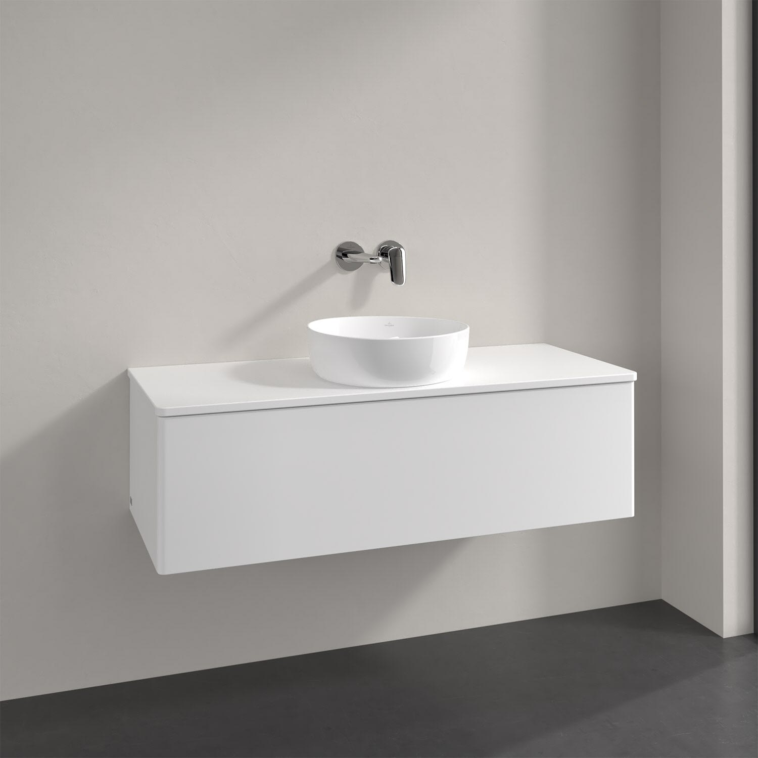 Villeroy & Boch Antao Waschbeckenunterschrank, 120 x 36 cm, 1 Auszug, Front ohne Struktur, mit Hahnloch, für Waschtisch mittig