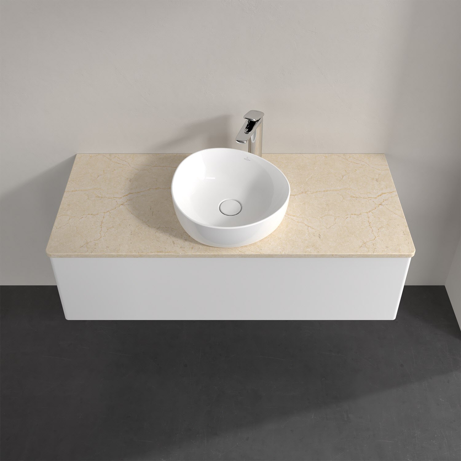 Für diesen Waschbeckenunterschrank stehen Ihnen Aufsatzwaschtische aus verschiedenen Serien zur Verfügung (siehe "Passliste" unter Downloads). Ein ausgewähltes Beispiel finden Sie im Zubehör. Den Waschtisch bitte separat mitbestellen.