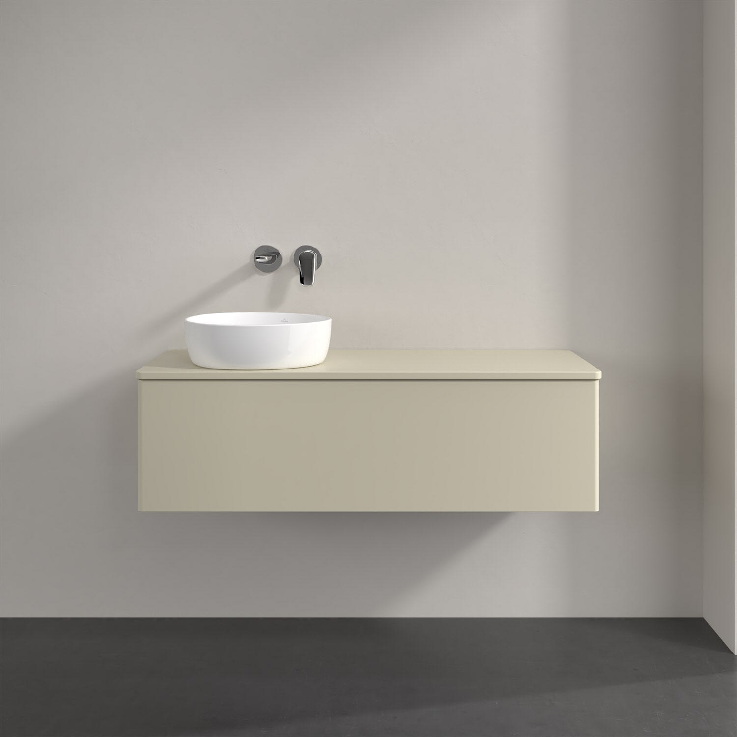 Villeroy & Boch Antao Waschbeckenunterschrank, 120 x 36 cm, 1 Auszug, Front ohne Struktur, mit Hahnloch, für Waschtisch links