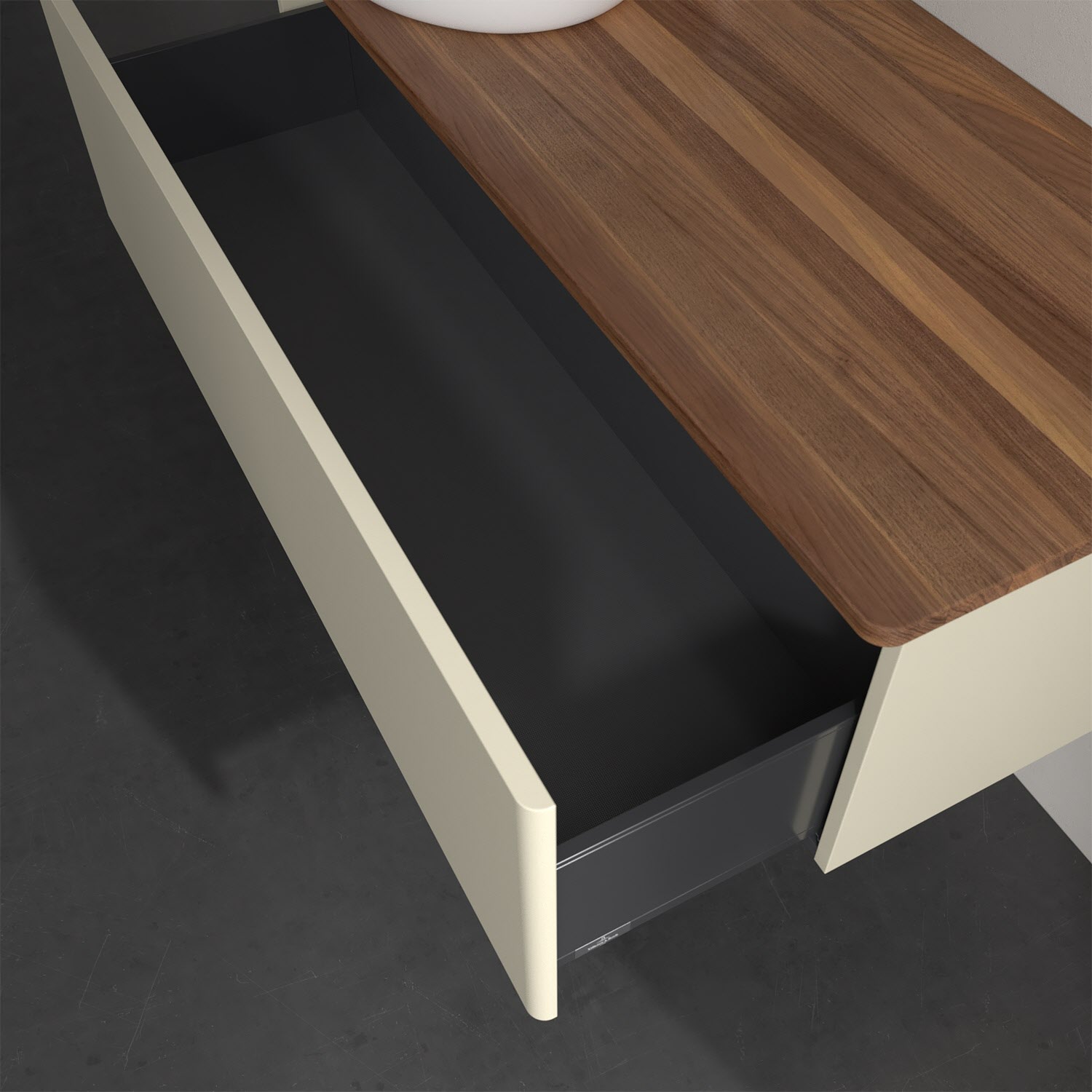 - kein Umfallen oder Verrutschen von Pflegeprodukten in den Schubladen dank rutschhemmendem Boden