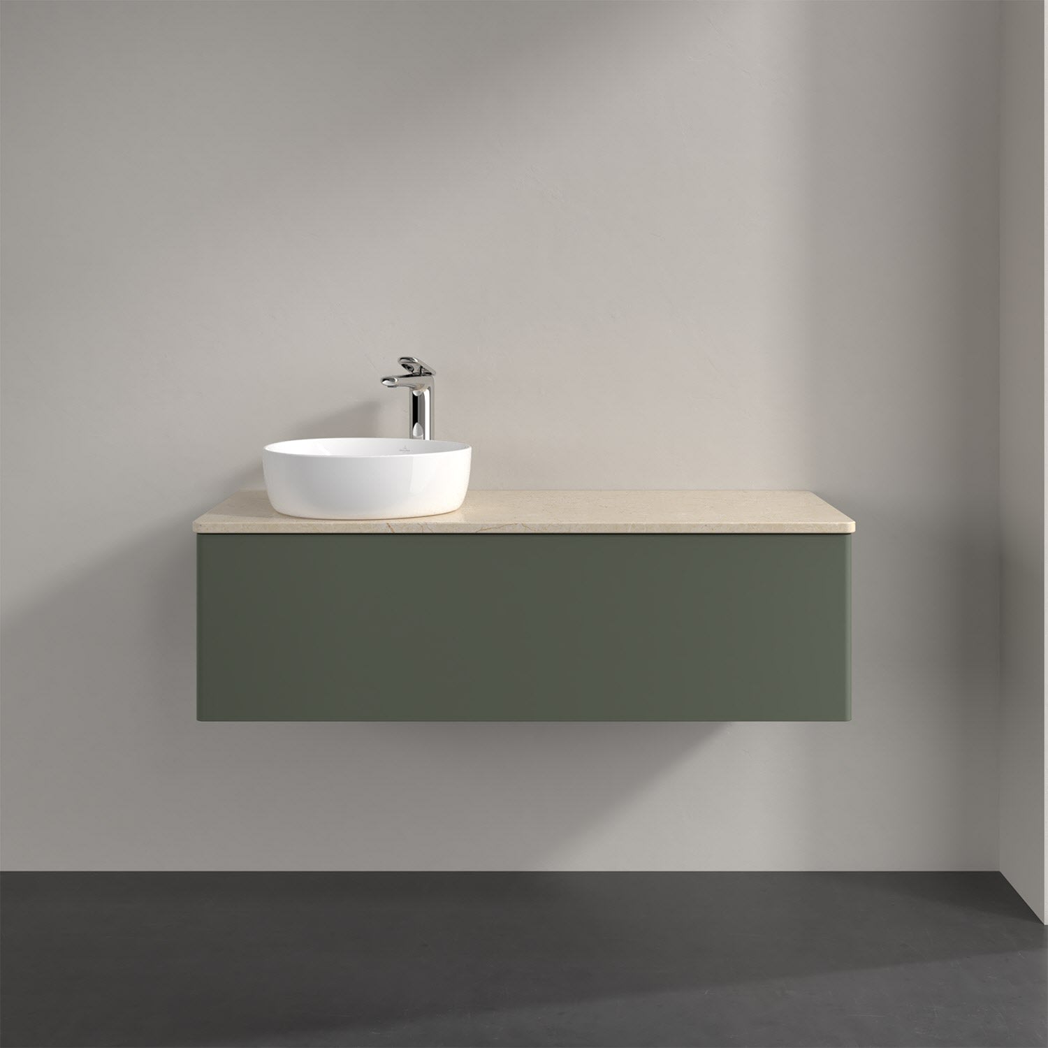 Villeroy & Boch Antao Waschbeckenunterschrank, 120 x 36 cm, 1 Auszug, Front ohne Struktur, mit Hahnloch, für Waschtisch links