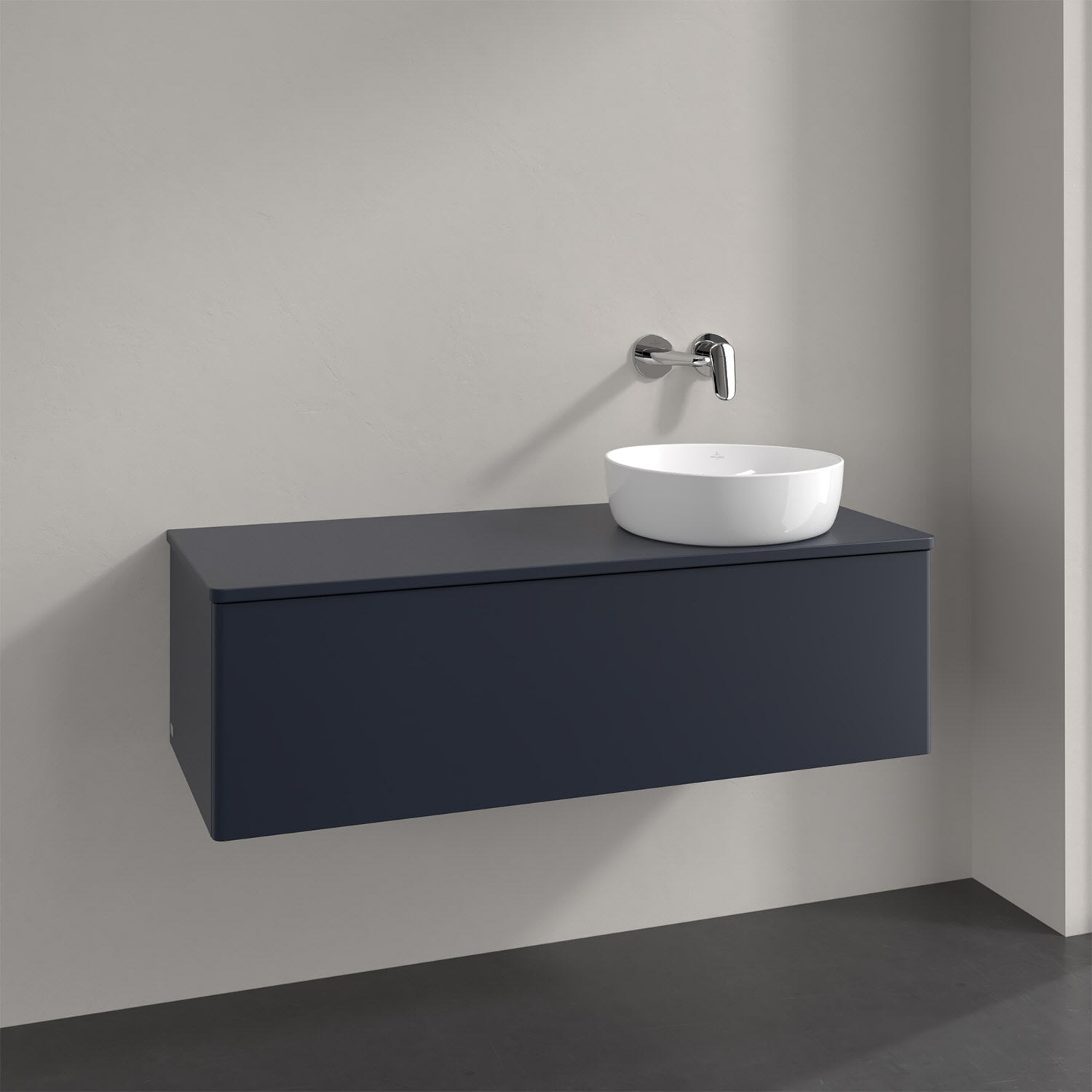 Villeroy & Boch Antao Waschbeckenunterschrank, 120 x 36 cm, 1 Auszug, Front ohne Struktur, mit Hahnloch, für Waschtisch rechts