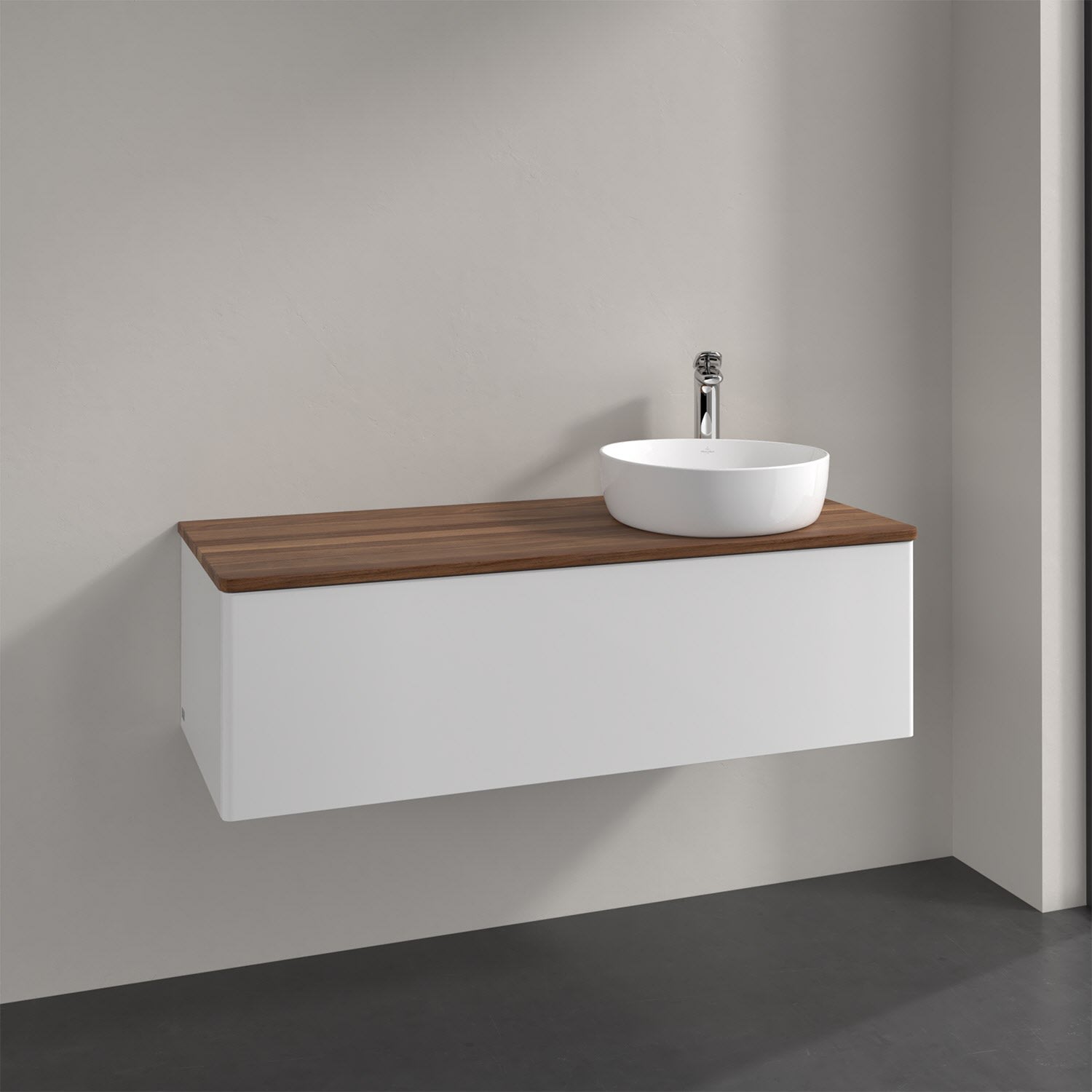 Villeroy & Boch Antao Waschbeckenunterschrank, 120 x 36 cm, 1 Auszug, Front ohne Struktur, mit Hahnloch, für Waschtisch rechts