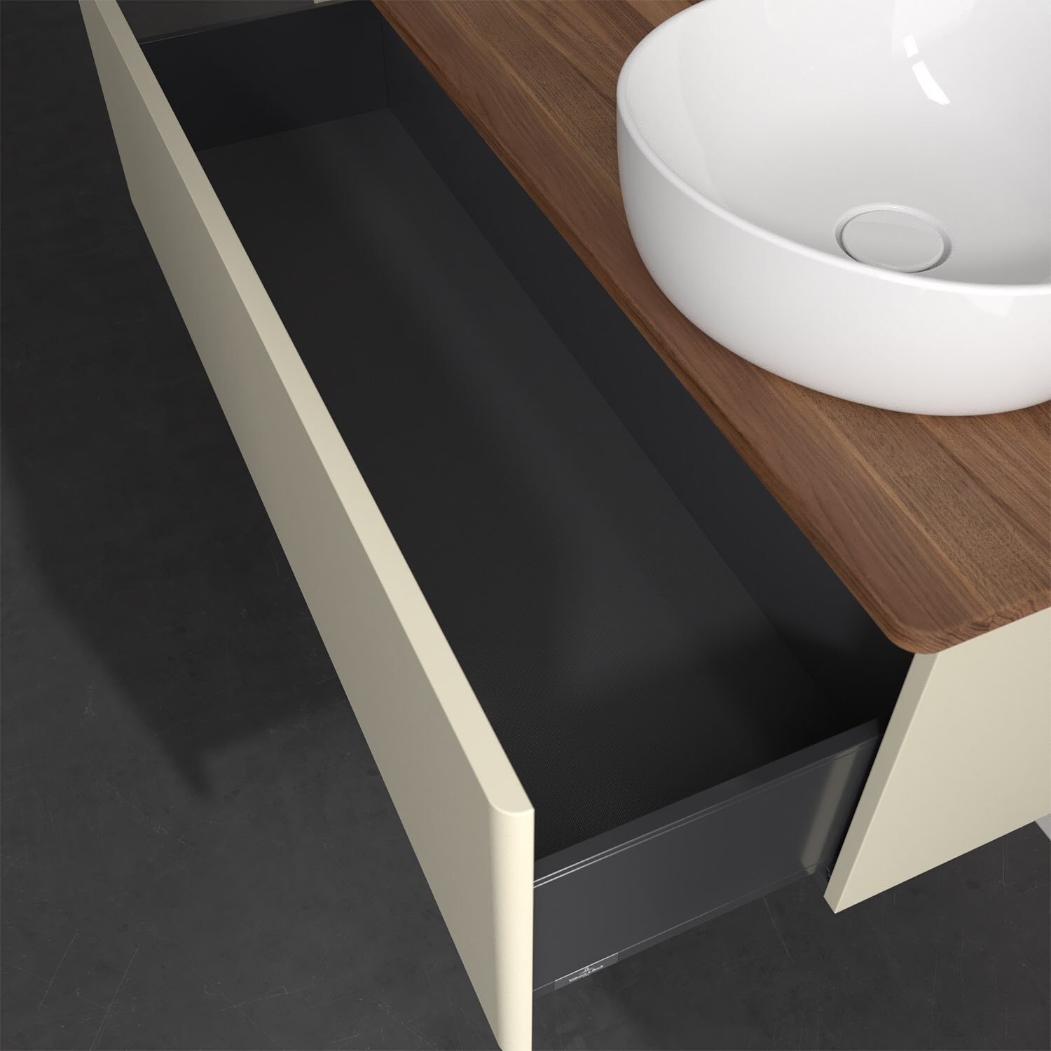 - kein Umfallen oder Verrutschen von Pflegeprodukten in den Schubladen dank rutschhemmendem Boden