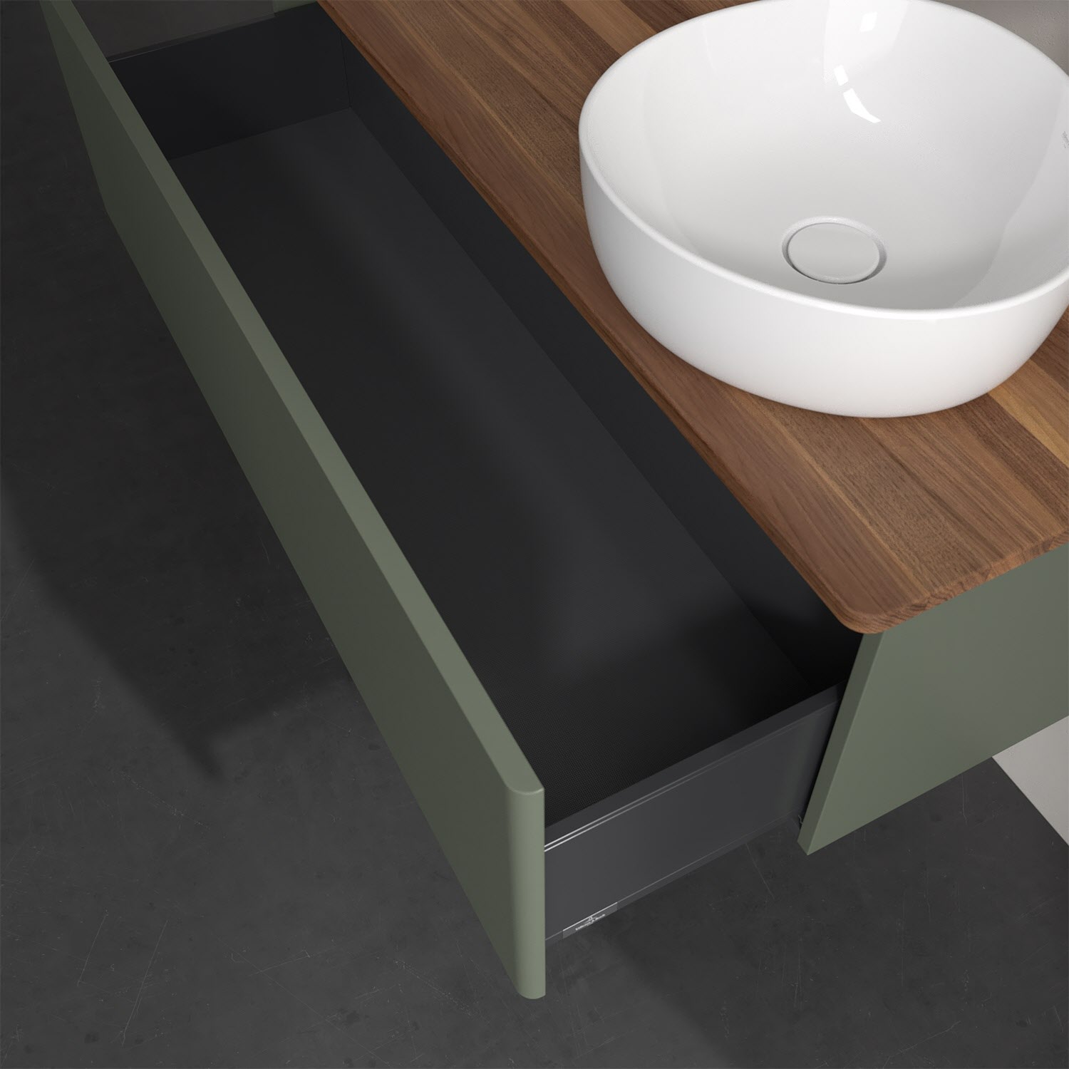 - kein Umfallen oder Verrutschen von Pflegeprodukten in den Schubladen dank rutschhemmendem Boden