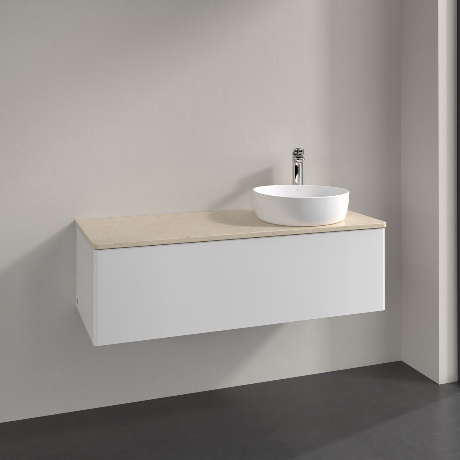 Villeroy & Boch Antao Waschbeckenunterschrank, 120 x 36 cm, 1 Auszug, Front ohne Struktur, mit Hahnloch, für Waschtisch rechts