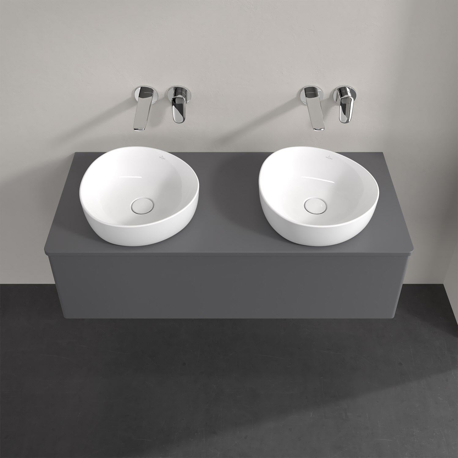 Für diesen Waschbeckenunterschrank stehen Ihnen Aufsatzwaschtische aus verschiedenen Serien zur Verfügung (siehe "Passliste" unter Downloads). Ein ausgewähltes Beispiel finden Sie im Zubehör. Den Waschtisch bitte separat mitbestellen.
