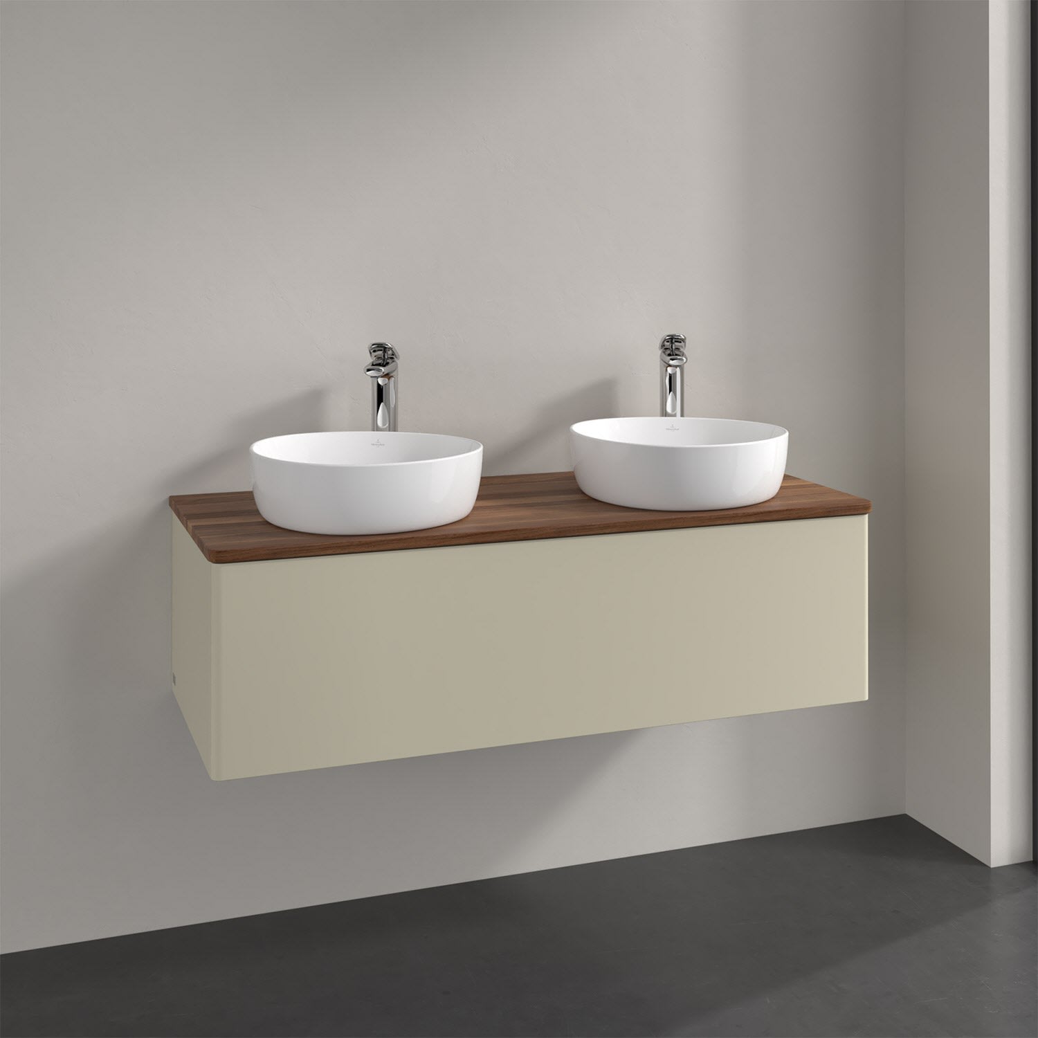 Villeroy & Boch Antao Waschbeckenunterschrank, 120 x 36 cm, 1 Auszug, Front ohne Struktur, mit Hahnloch, für Waschtisch links und rechts