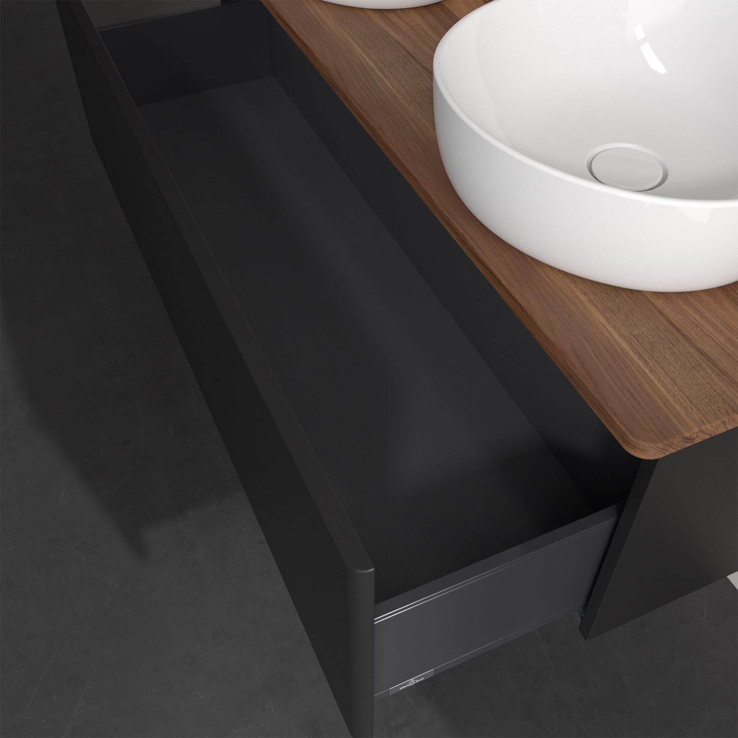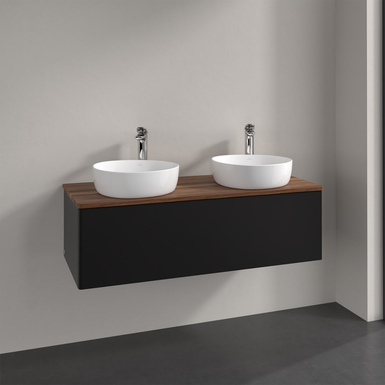 Der wandhängende Antao Waschtischunterschrank von Villeroy & Boch bietet nicht nur jede Menge Stauraum – er ist dank seines naturinspirierten Designs mit seinen abgerundeten Kanten auch noch besonders stilvoll und schafft eine gemütliche Atmosphäre im Badezimmer. Kombiniert mit zwei passenden Aufsatzwaschtischen also die ideale Wahl. Ein extra hoher Auszug bietet viel Platz, um alles Notwendige zu verstauen und Ordnung zu halten. Öffnen lässt er sich durch leichten Druck auf die grifflose Front. Dank Vollauszug hat man immer alles im Blick und der Antirutschboden verhindert ein Umfallen oder Verrutschen der Gegenstände. Einfach clever! Für eine besonders leichte Pflege sorgt die mehrschichtig deckend lackierte Oberfläche. Bei der Ausführung in Massivholz wird dank des verarbeiteten Massivholzes jedes Möbel zu einem Unikat, das sich durch das lebendige Naturmaterial durch seine einzigartige Struktur und Maserung auszeichnet.