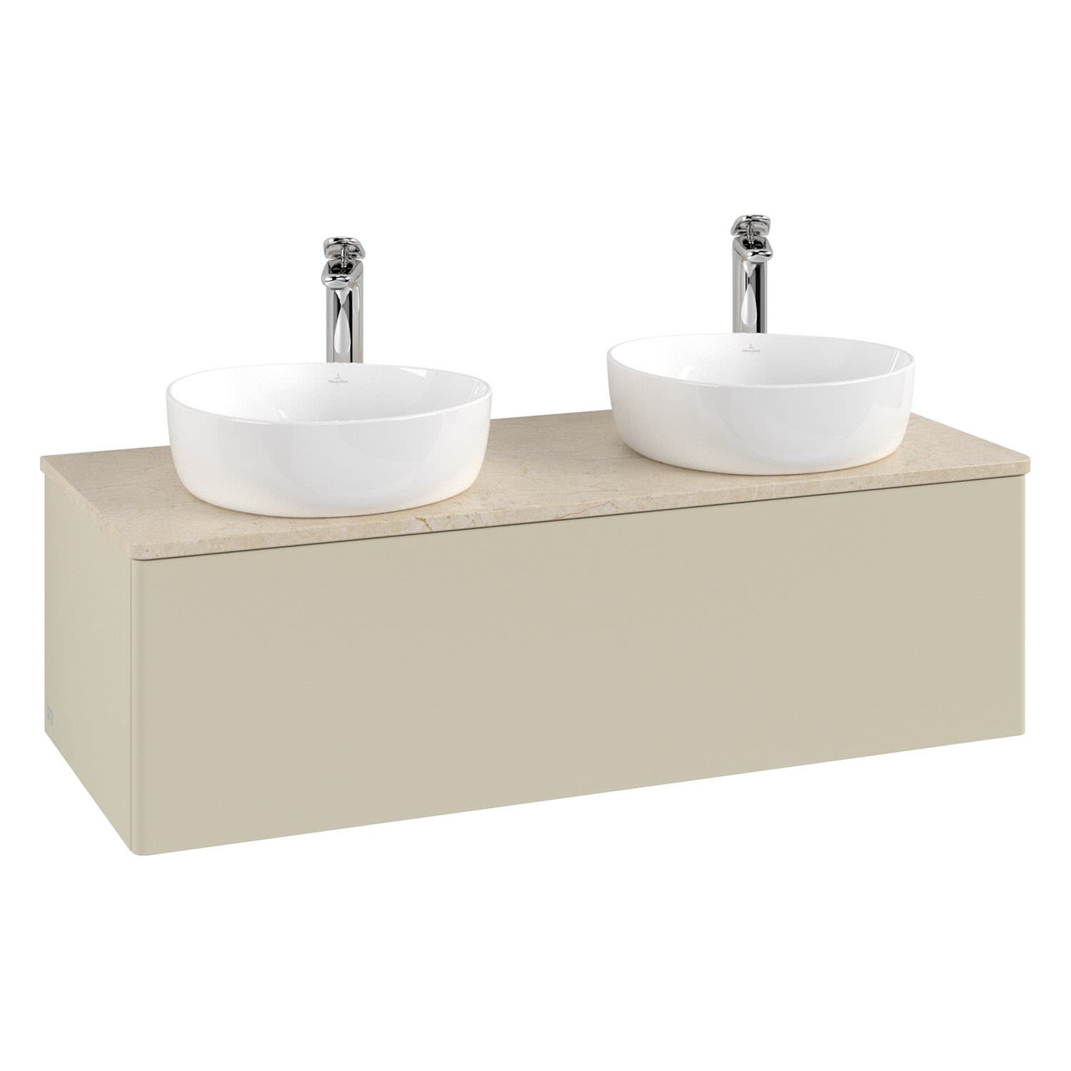 Villeroy & Boch Antao Waschbeckenunterschrank, 120 x 36 cm, 1 Auszug, Front ohne Struktur, mit Hahnloch, für Waschtisch links und rechts