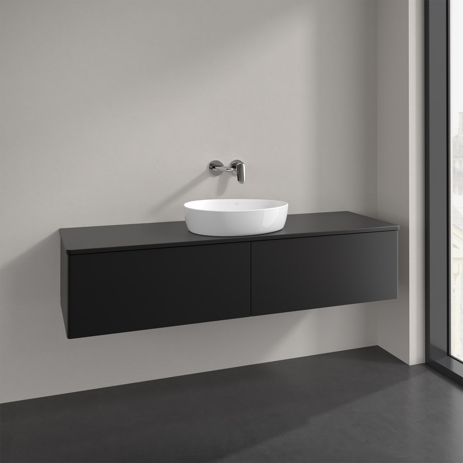 Der wandhängende Antao Waschtischunterschrank bietet mit seinen beiden extra hohen Auszügen und seiner erstaunlichen Größe viel Platz zum Verstauen von Utensilien im Badezimmer. Dank des mittig platzierten Aufsatzwaschtischs gibt es seitlich weiteren Platz für Handtücher, Seifenspender & Co. auf der Waschtischplatte. Inspiriert von der Natur überzeugt der Unterschrank auch optisch mit sanfter Formsprache und abgerundete Kanten. Die grifflosen Auszüge sind mit der Push-to-Open Funktion ausgestattet und verfügen über einen Antirutschboden, damit Utensilien sicher verstaut werden können. Mit seiner Vollauszug- und Selbsteinzug-Funktion ist der Schrank praktisch und leicht zu bedienen. Qualität von Villeroy & Boch! Für eine besonders leichte Pflege sorgt die mehrschichtig deckend lackierte Oberfläche.