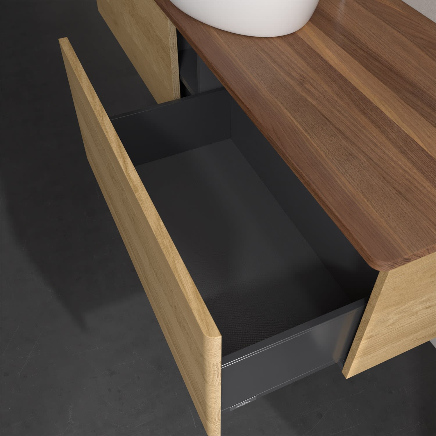 - kein Umfallen oder Verrutschen von Pflegeprodukten in den Schubladen dank rutschhemmendem Boden
