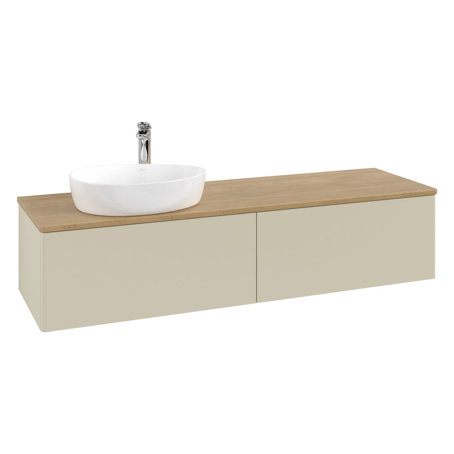 Villeroy & Boch Antao Waschbeckenunterschrank, 160 x 36 cm, 2 Auszüge, Front ohne Struktur, mit Hahnloch, für Waschtisch links