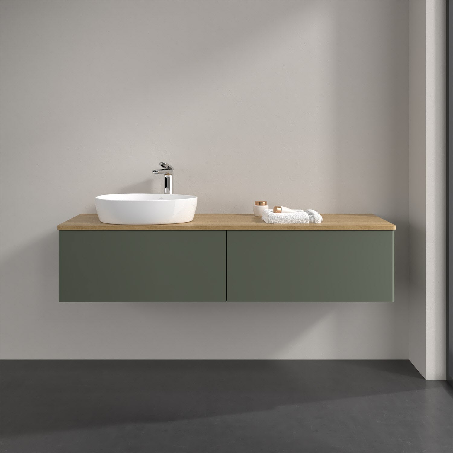 Der wandhängende Antao Waschtischunterschrank bietet mit seinen beiden extra hohen Auszügen und seiner erstaunlichen Größe viel Platz zum Verstauen von Utensilien im Badezimmer. Dank des seitlich platzierten Aufsatzwaschtischs gibt es daneben weiteren Platz für Handtücher, Seifenspender & Co. auf der Waschtischplatte. Inspiriert von der Natur überzeugt der Unterschrank auch optisch mit sanfter Formsprache und abgerundete Kanten. Die grifflosen Auszüge sind mit der Push-to-Open Funktion ausgestattet und verfügen über einen Antirutschboden, damit Utensilien sicher verstaut werden können. Mit seiner Vollauszug- und Selbsteinzug-Funktion ist der Schrank praktisch und leicht zu bedienen. Qualität von Villeroy & Boch! Für eine besonders leichte Pflege sorgt die mehrschichtig deckend lackierte Oberfläche. Bei der Ausführung in Massivholz wird dank des verarbeiteten Massivholzes jedes Möbel zu einem Unikat, das sich durch das lebendige Naturmaterial durch seine einzigartige Struktur und Maserung auszeichnet.