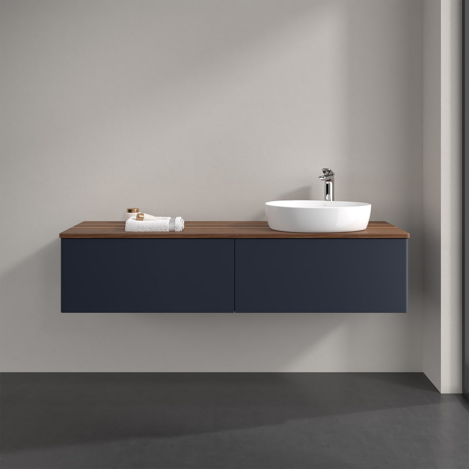 Villeroy & Boch Antao Waschbeckenunterschrank, 160 x 36 cm, 2 Auszüge, Front ohne Struktur, mit Hahnloch, für Waschtisch rechts