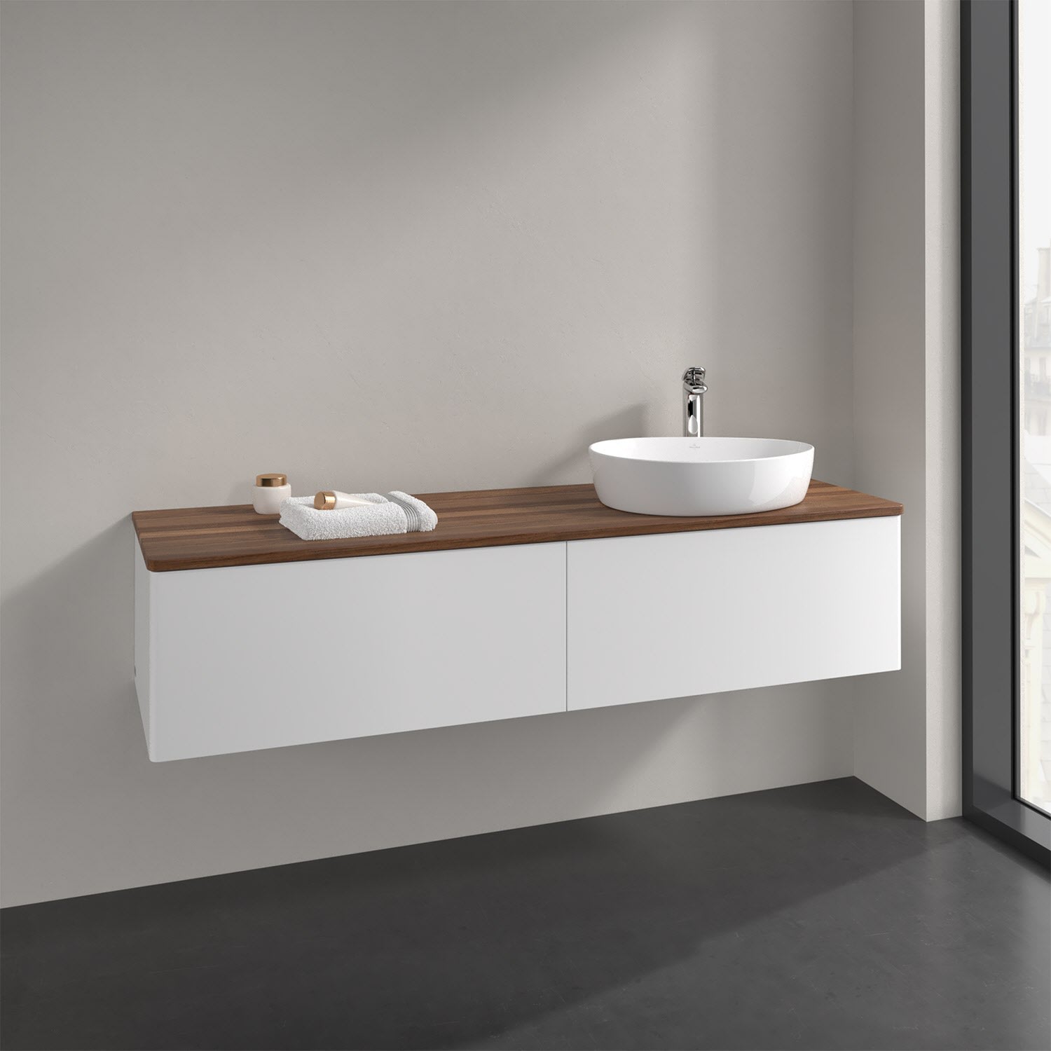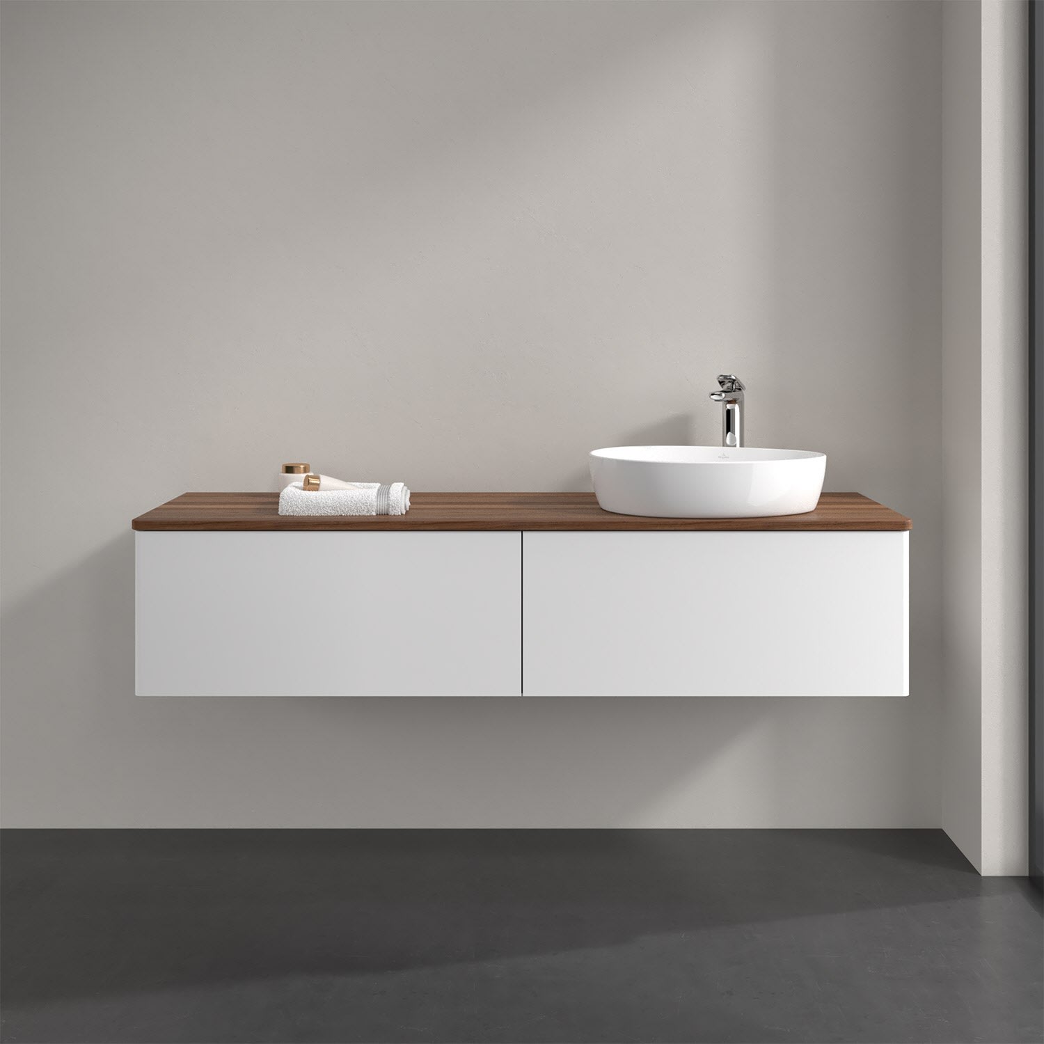 Villeroy & Boch Antao Waschbeckenunterschrank, 160 x 36 cm, 2 Auszüge, Front ohne Struktur, mit Hahnloch, für Waschtisch rechts