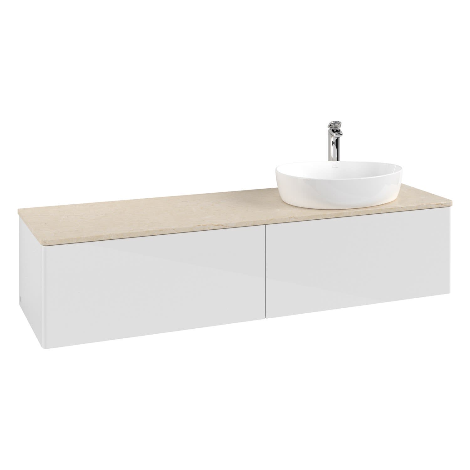 Villeroy & Boch Antao Waschbeckenunterschrank, 160 x 36 cm, 2 Auszüge, Front ohne Struktur, mit Hahnloch, für Waschtisch rechts