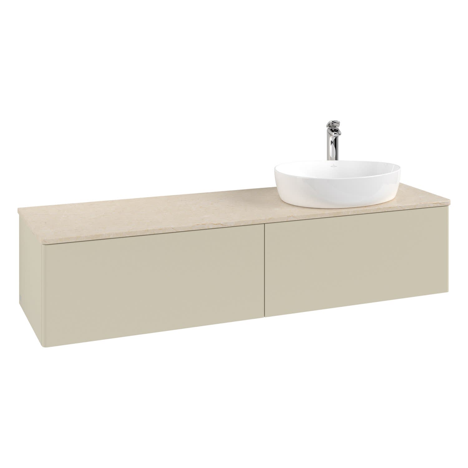 Villeroy & Boch Antao Waschbeckenunterschrank, 160 x 36 cm, 2 Auszüge, Front ohne Struktur, mit Hahnloch, für Waschtisch rechts
