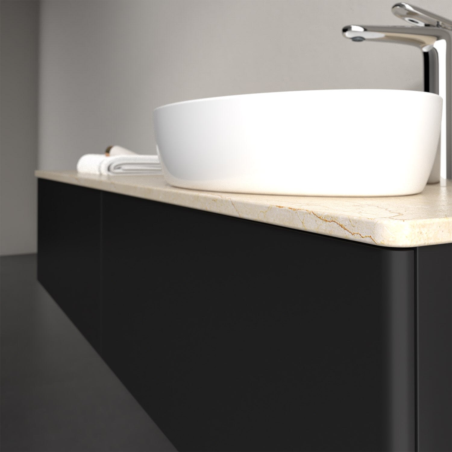 Für diesen Waschbeckenunterschrank stehen Ihnen Aufsatzwaschtische aus verschiedenen Serien zur Verfügung (siehe "Passliste" unter Downloads). Ein ausgewähltes Beispiel finden Sie im Zubehör. Den Waschtisch bitte separat mitbestellen.
