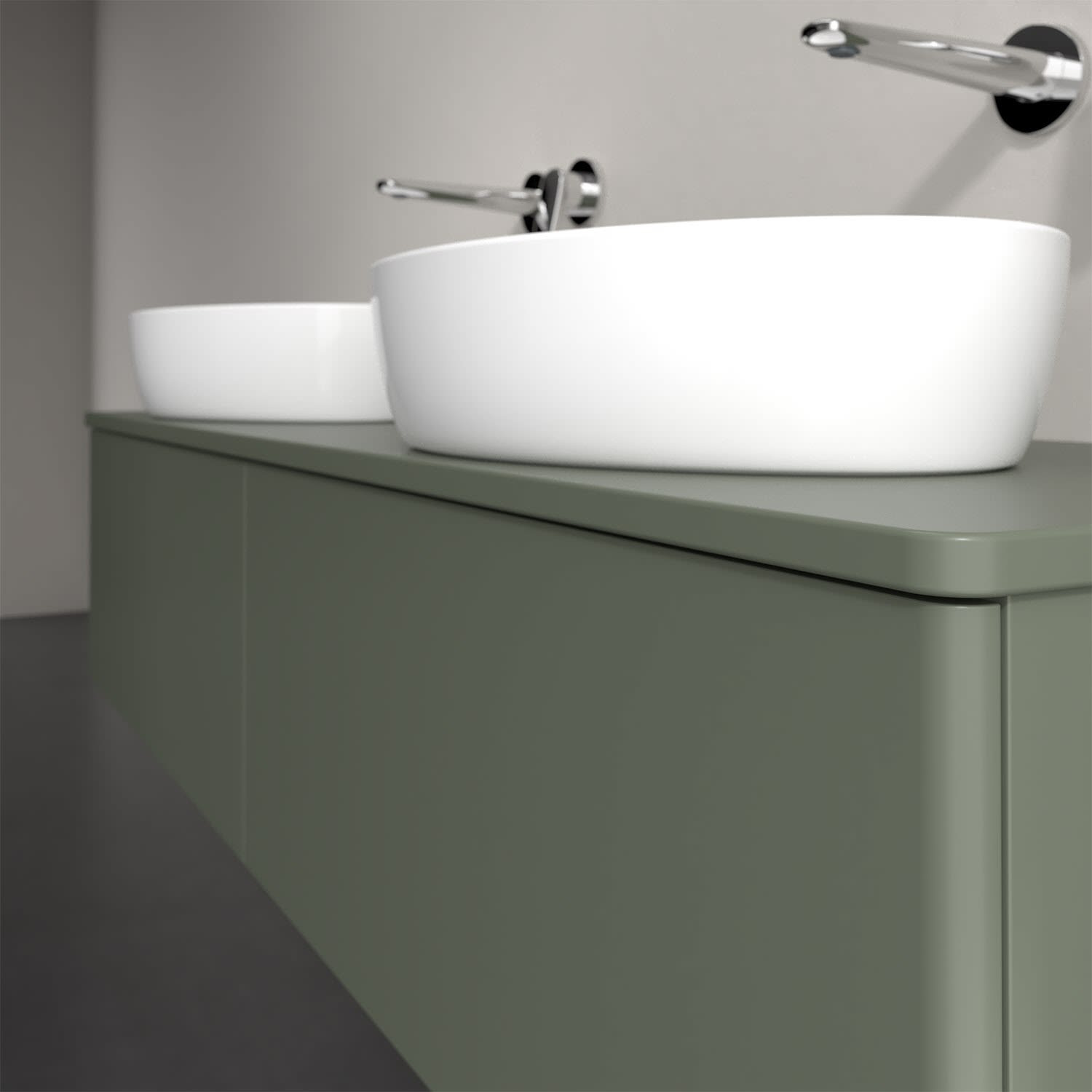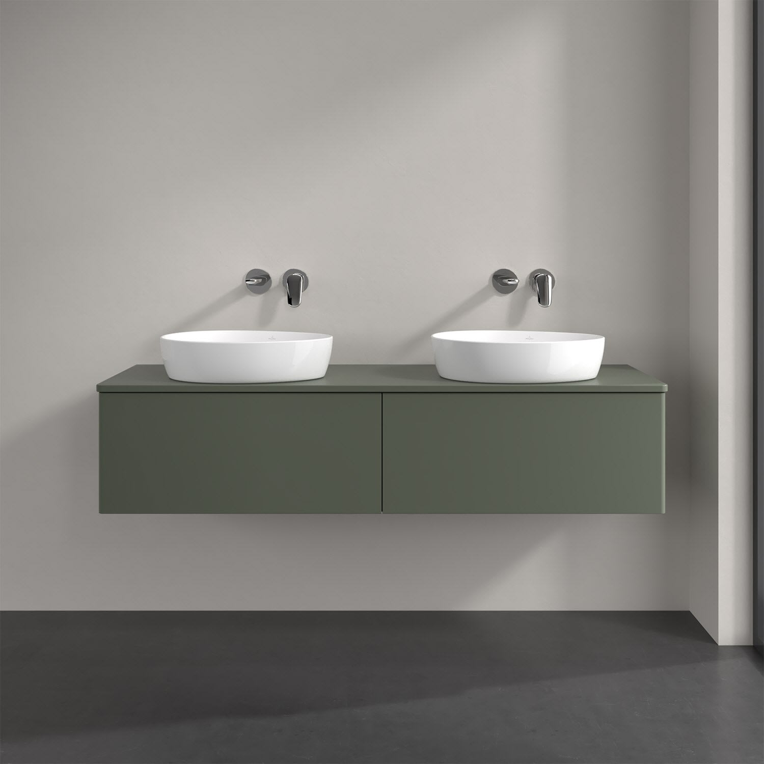 Der wandhängende Antao Waschtischunterschrank für zwei Aufsatzwaschtische bietet mit seinen beiden extra hohen Auszügen und seiner erstaunlichen Größe viel Platz zum Verstauen von Utensilien im Badezimmer. Inspiriert von der Natur überzeugt der Unterschrank auch optisch mit sanfter Formsprache und abgerundete Kanten. Die grifflosen Auszüge sind mit der Push-to-Open Funktion ausgestattet und verfügen über einen Antirutschboden, damit Utensilien sicher verstaut werden können. Mit seiner Vollauszug- und Selbsteinzug-Funktion ist der Schrank praktisch und leicht zu bedienen. Qualität von Villeroy & Boch! Für eine besonders leichte Pflege sorgt die mehrschichtig deckend lackierte Oberfläche.