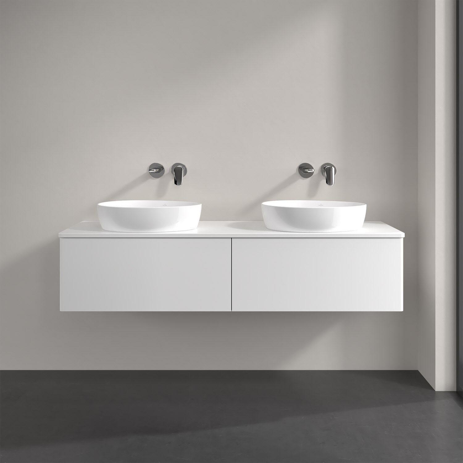 Villeroy & Boch Antao Waschbeckenunterschrank, 160 x 36 cm, 2 Auszüge, Front ohne Struktur, mit Hahnloch, für Waschtisch links und rechts